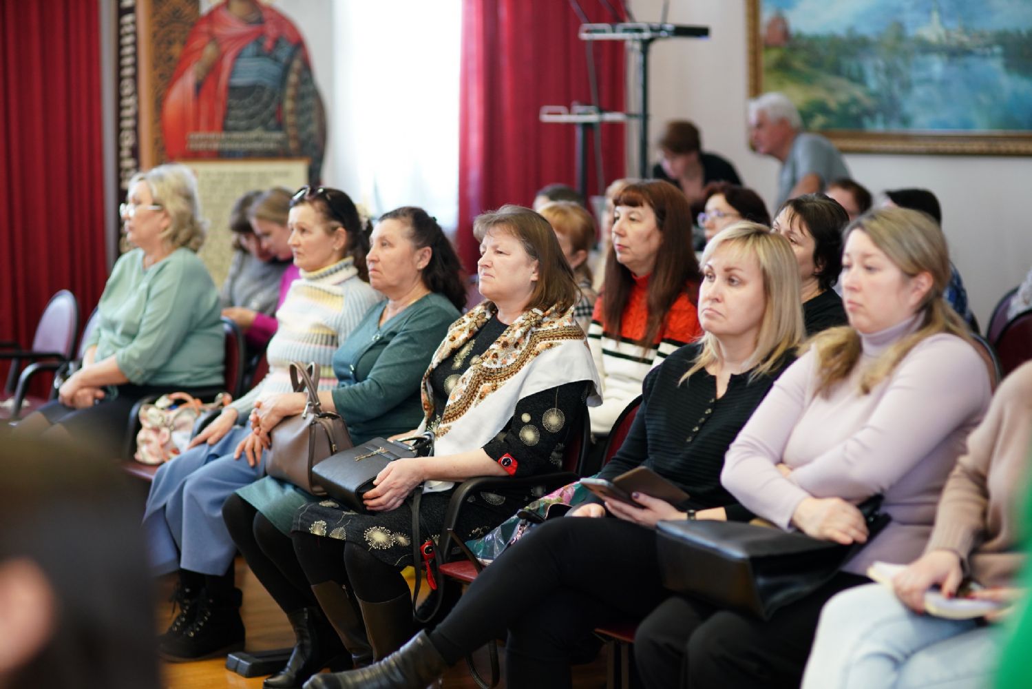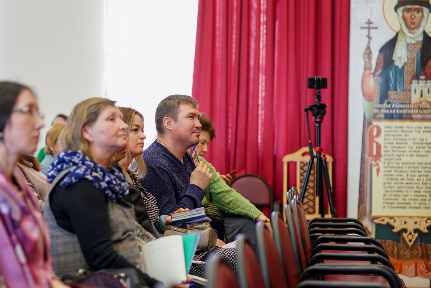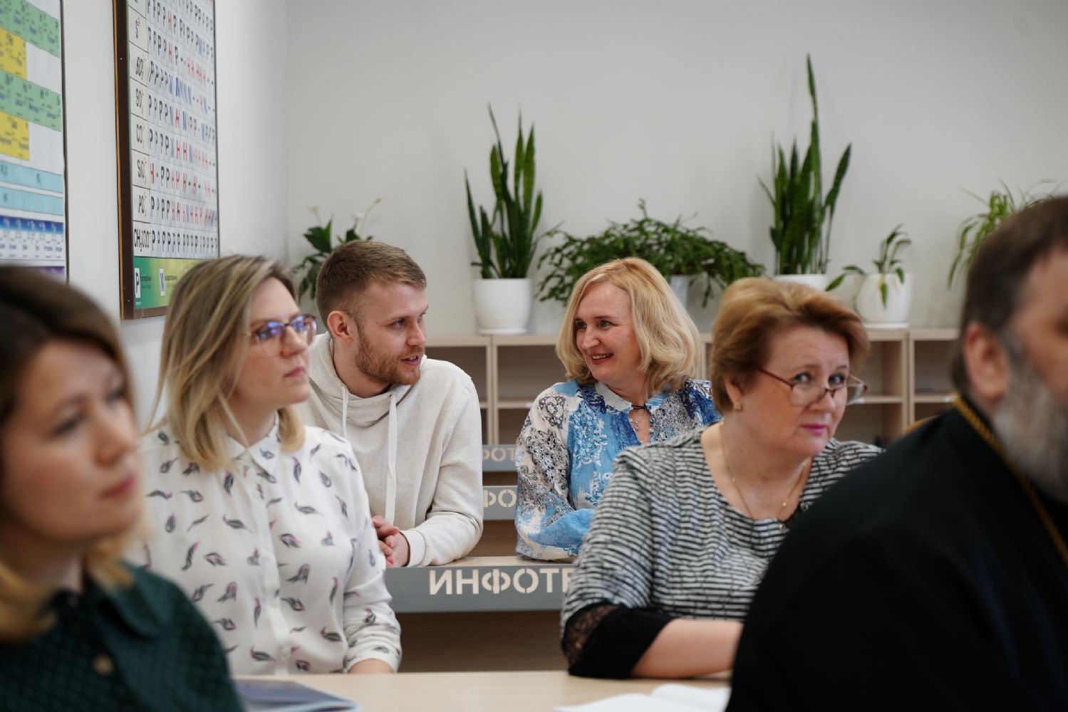 Во второй половине дня в аудиторию Православного центра Йошкар-Олинской епархии на встречу с нашими гостями пришли заместители директоров по учебно-воспитательной работе образовательных организаций г. Йошкар-Олы. Выступления педагогов Санкт-Петербурга вызвали живой отклик у участников встречи, особенно их заинтересовали авторские программы и разработки уроков по ОПК священника Димитрия Пономарева, а также модель формирования духовно-нравственного пространства в ГБОУ СОШ № 367 Фрунзенского района Санкт-Петербурга, с которой завучей познакомила Соколова Ирина Геннадьевна, директор данной школы.