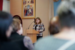 Касаткина Наталья Валерьевна, региональный методист, старший преподаватель кафедры общественно-научного и культурологического образования СПб АППО, районный методист предметных областей ОРКСЭ, ОДНКНР Санкт-Петербурга, педагог – психолог высшей категории, в своем выступлении рассказала о путях достижения согласия в принятии решений и разработке совместных планов работы районов Санкт-Петербурга.