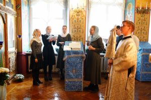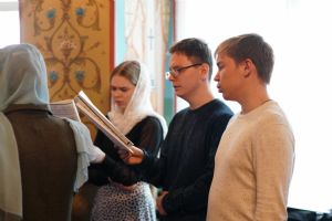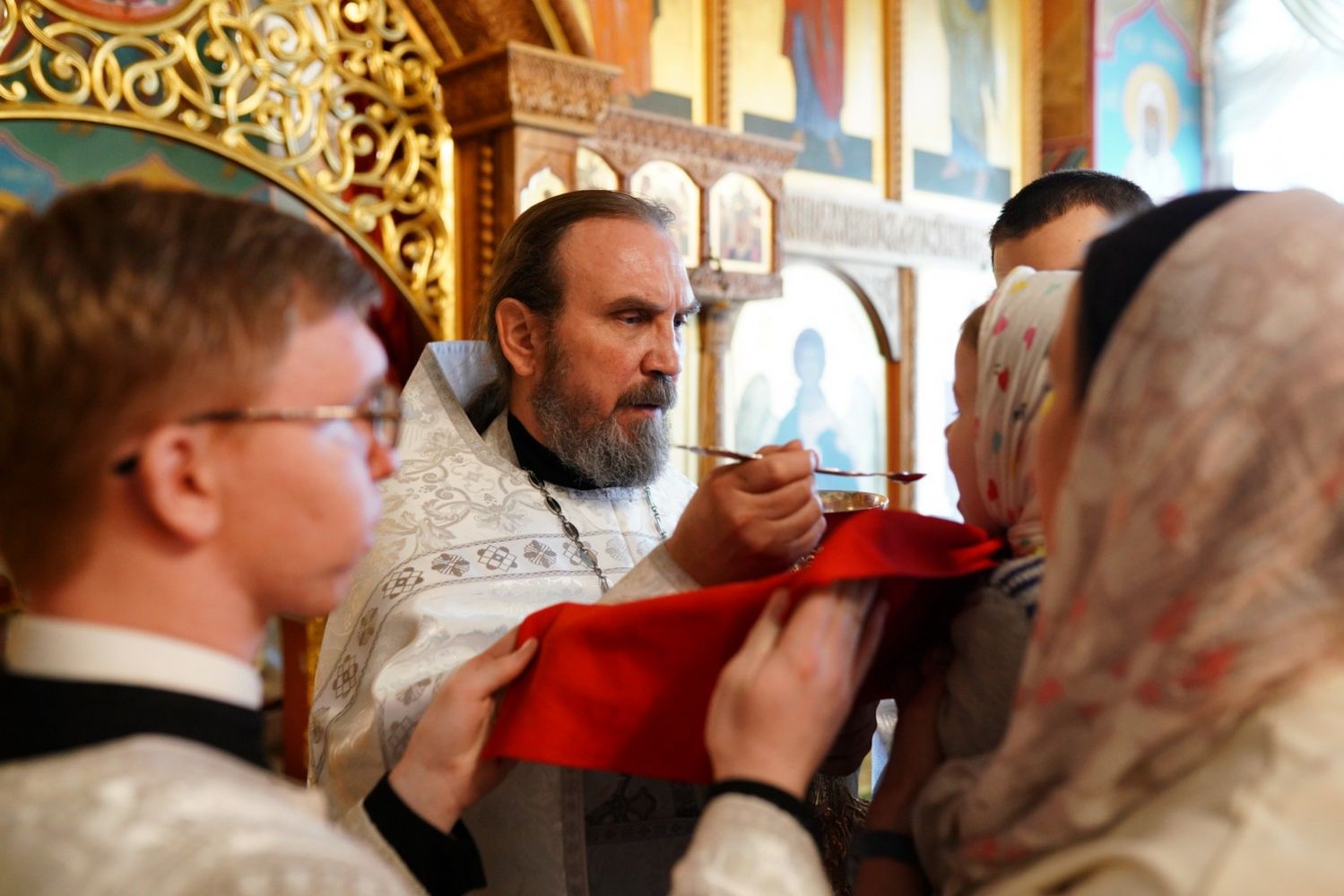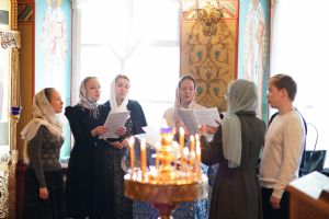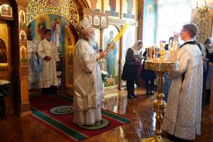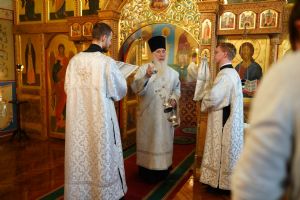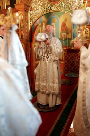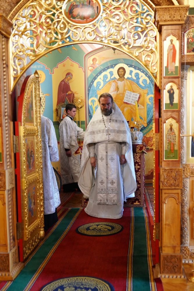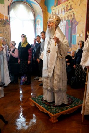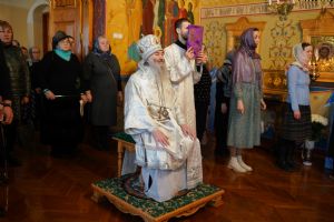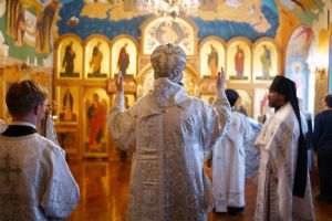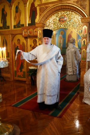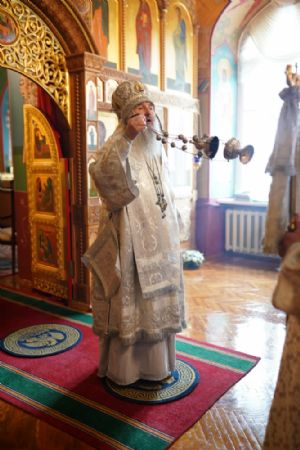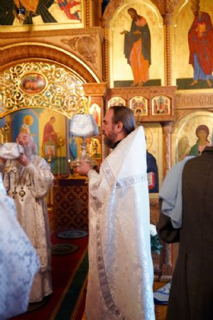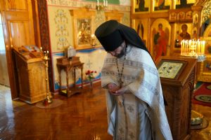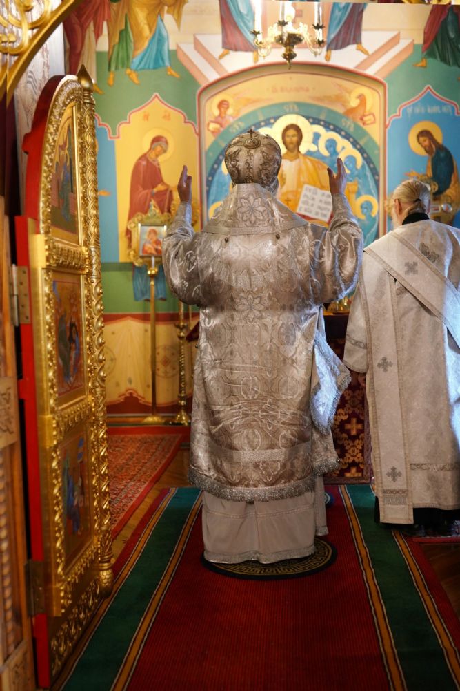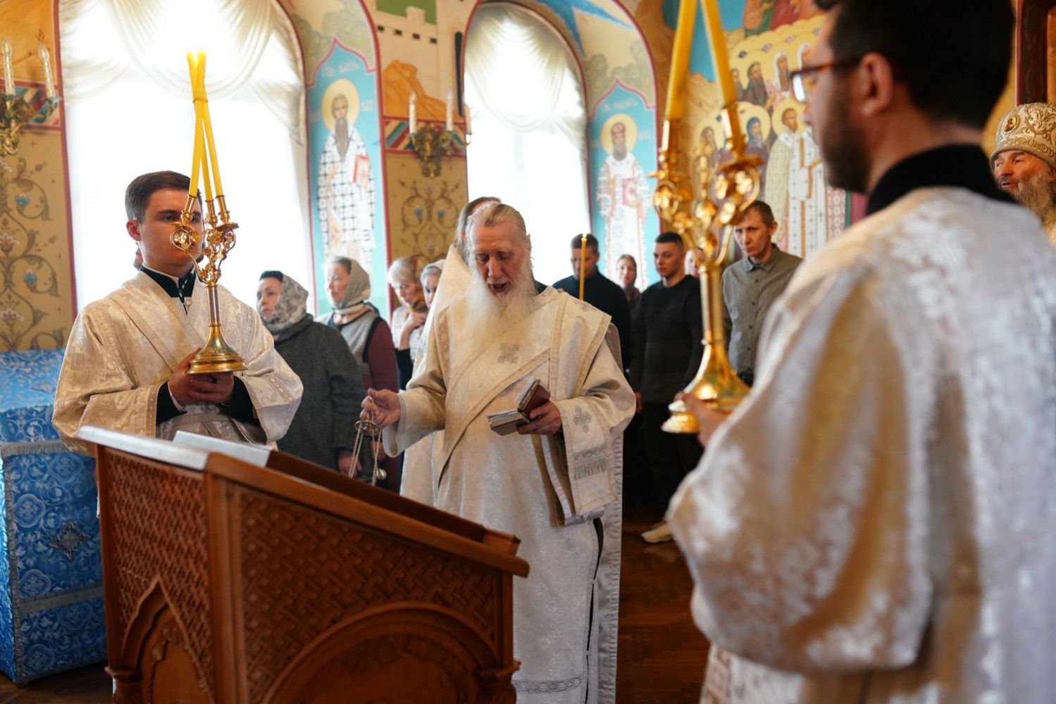 Владыке сослужили секретарь Йошкар-Олинского епархиального управления архимандрит Серафим (Пасанаев) и протодиакон Михаил Козловский. Песнопения исполнял хор «Благовест» под управлением Татьяны Черновой.