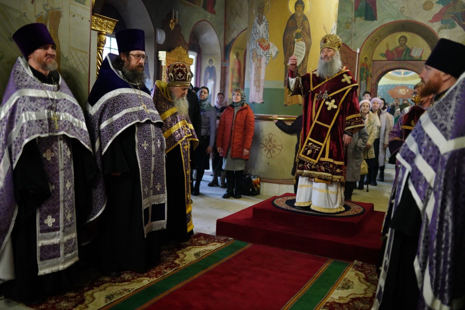 Владыке сослужили настоятель собора протоиерей Евгений Кутырев, благочинный Йошкар-Олинского церковного округа протоиерей Андрей Норкин, клирики собора иереи Владимир Глебов, Олег Большаков, Александр Деревяшкин и диакон Владимир Лихачев, а также протодиакон Михаил Козловский. Песнопения исполнял хор собора под управлением Ангелины Бабиной.