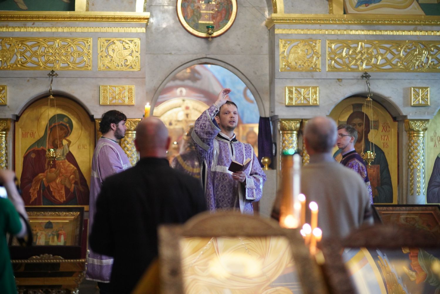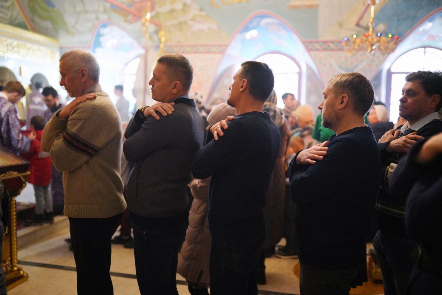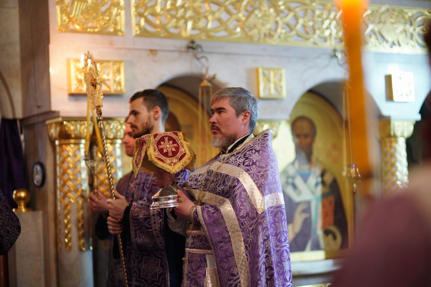 Владыке сослужили клирики Вознесенского собора иерей Александр Козлов, иерей Иоанн Кристев и диакон Владимир Лихачев, а также протодиакон Михаил Козловский. Песнопения исполнял хор храма под управлением Анны Ярошевич.