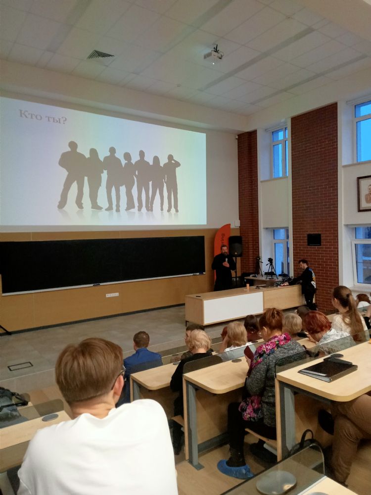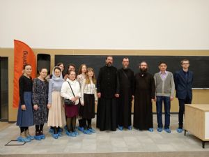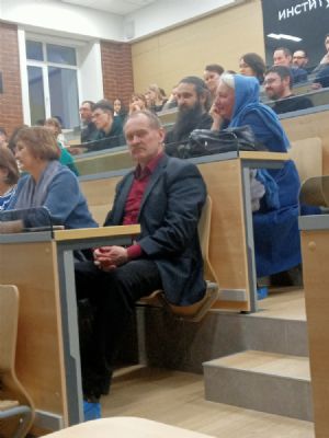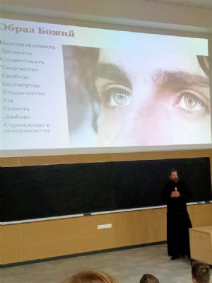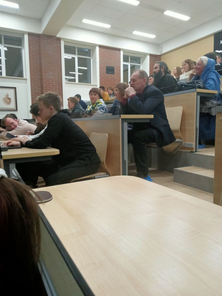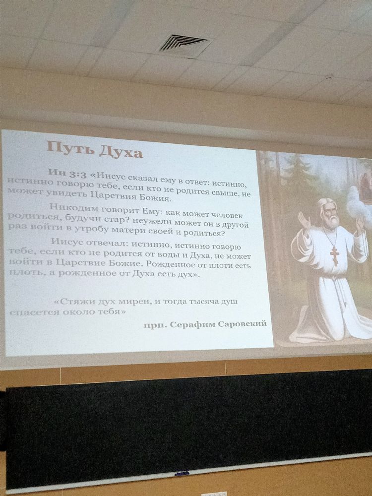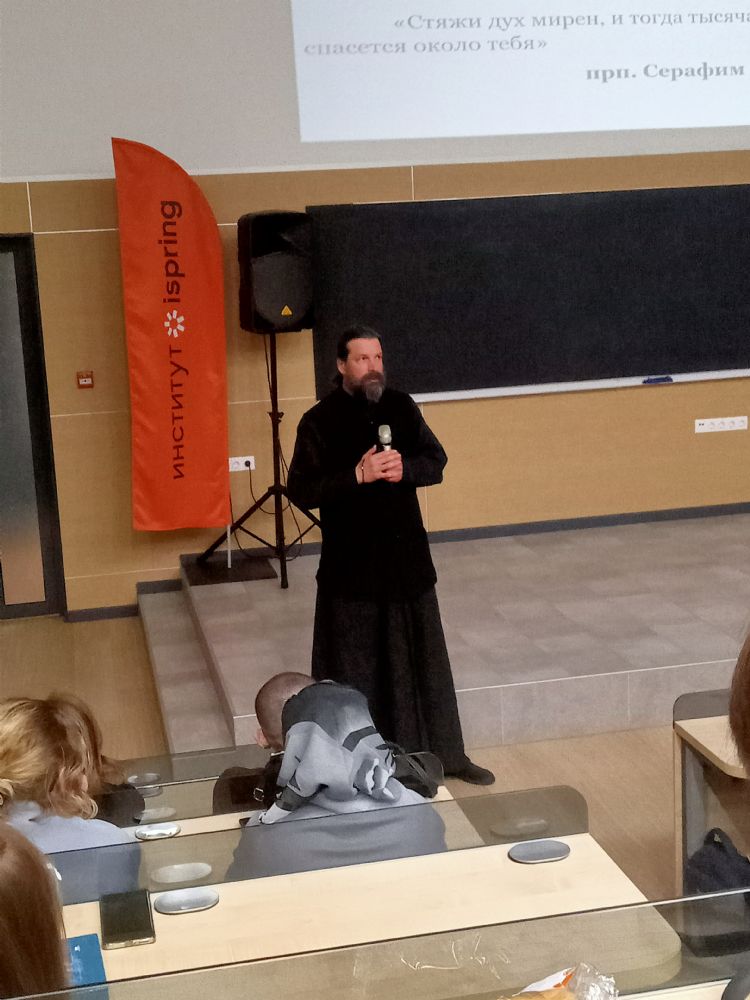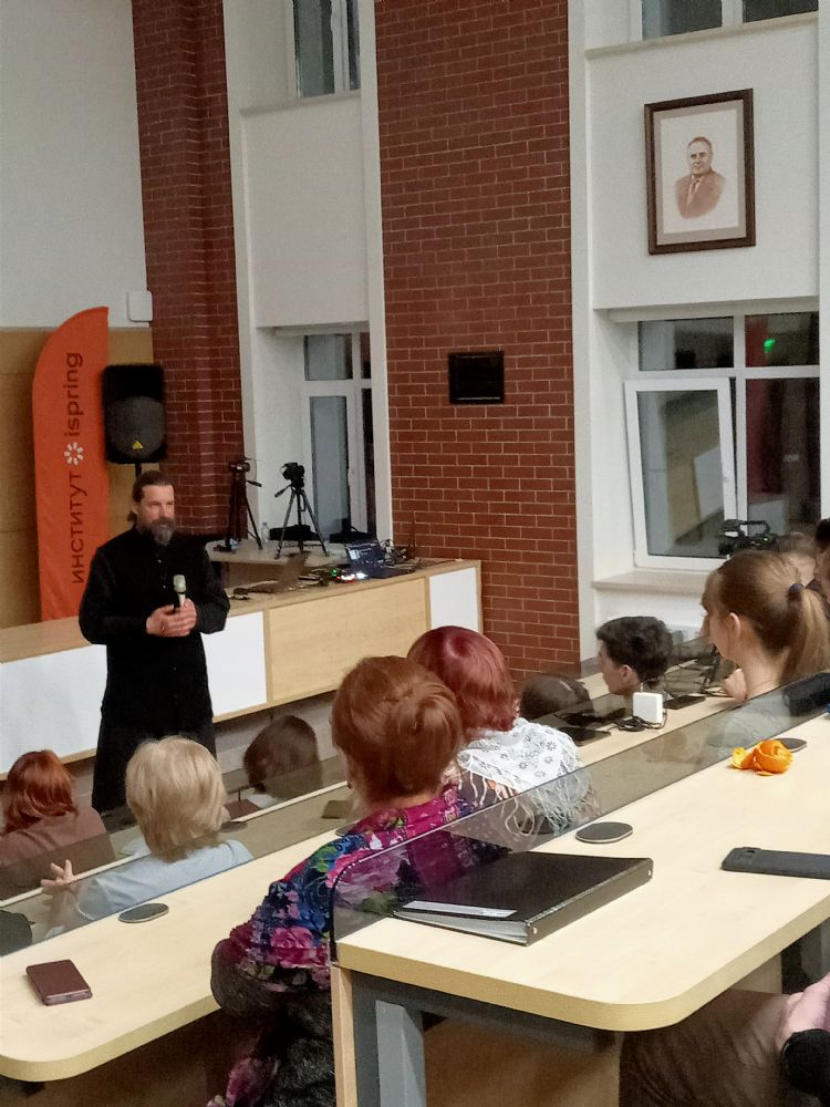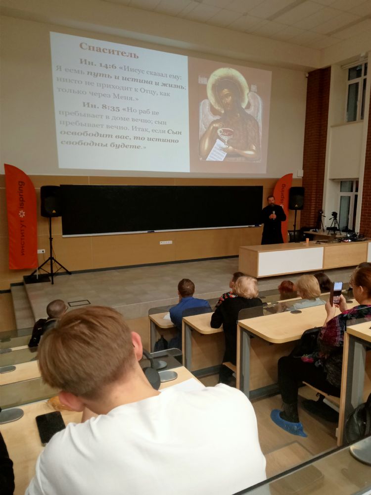 В институте iSpring г. Йошкар-Олы монах Калинник прочел лекцию «Что такое «человек» с точки зрения Священного Писания?» В зале собрались студенты и преподаватели этого вуза, преподаватели и слушатели Православных курсов, активисты движения «Православные добровольцы».
