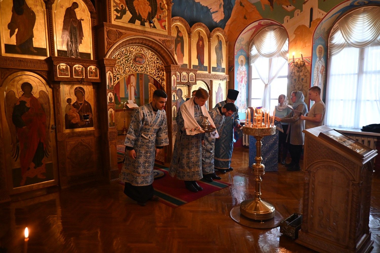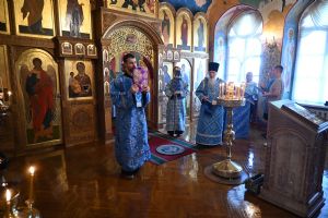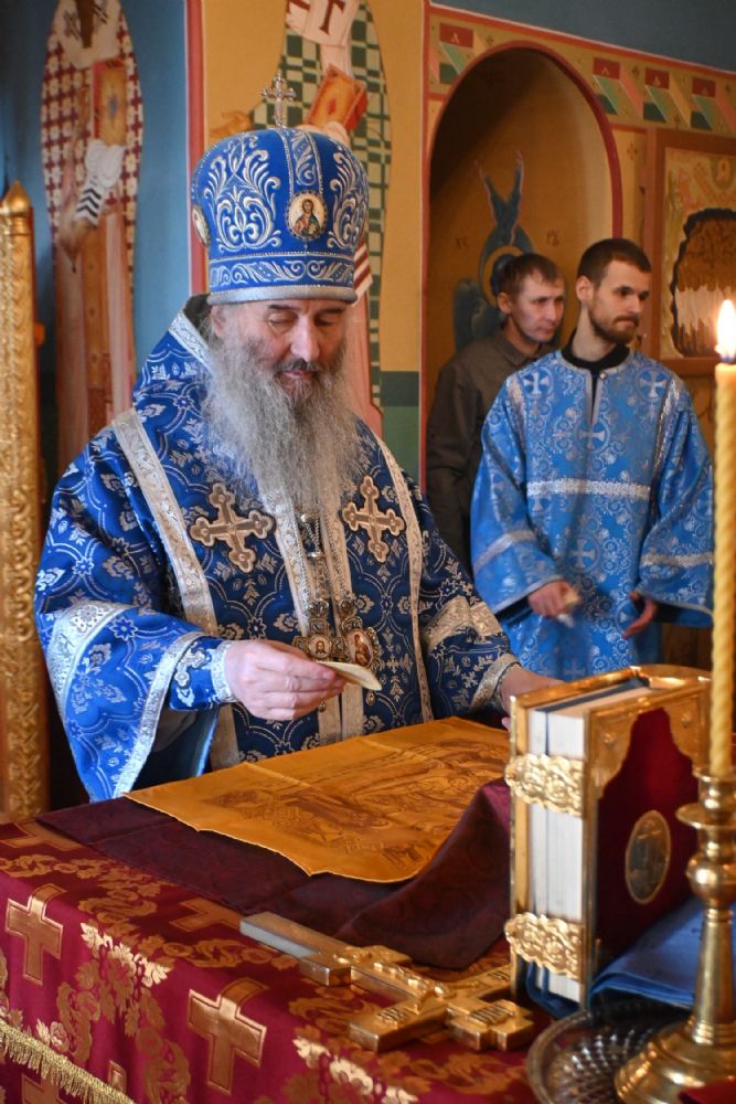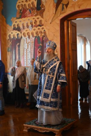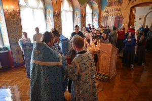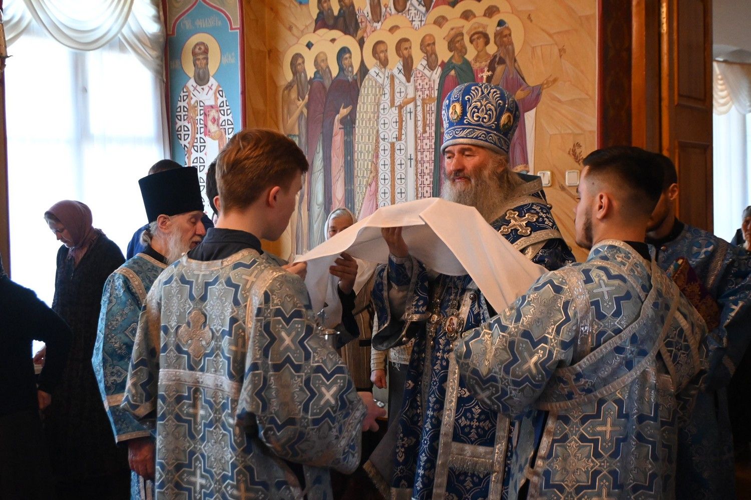 Владыке сослужили секретарь Йошкар-Олинского епархиального управления архимандрит Серафим (Пасанаев) и протодиакон Михаил Козловский. Песнопения исполнял малый состав хора «Благовест» под управлением Татьяны Черновой.