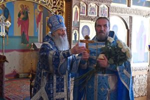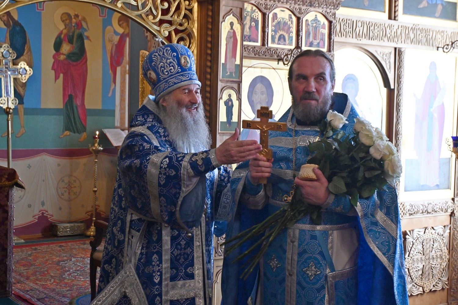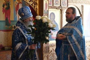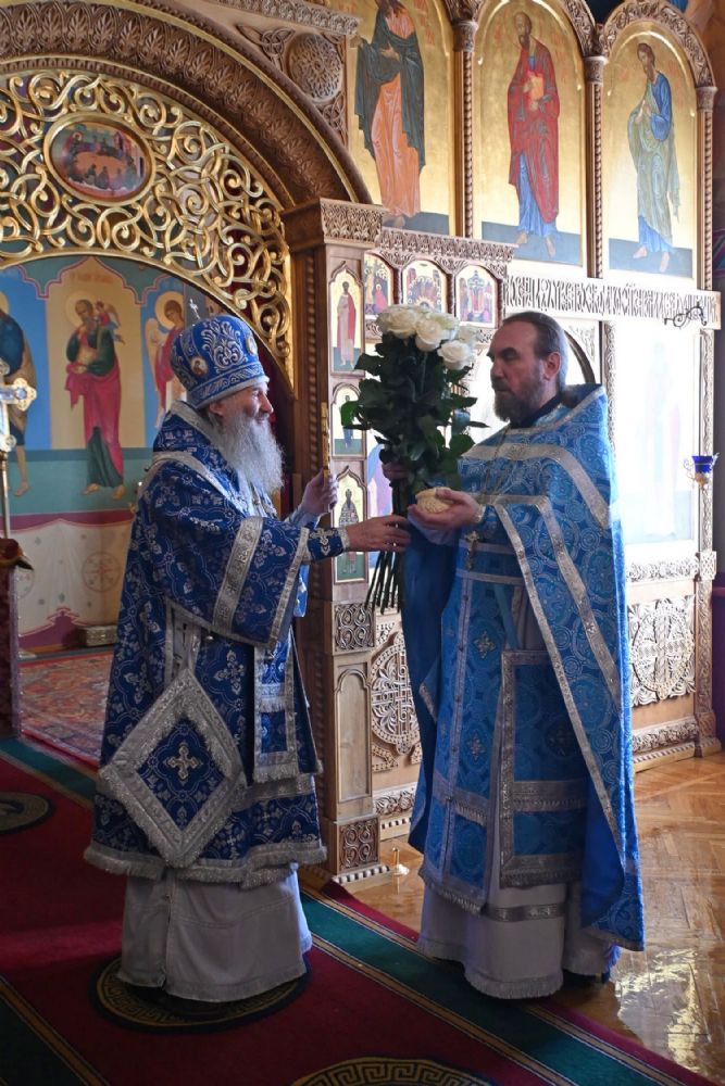В благословение отцу Серафиму митрополит Иоанн вручил просфору Пресвятой Богородицы и букет белых роз.