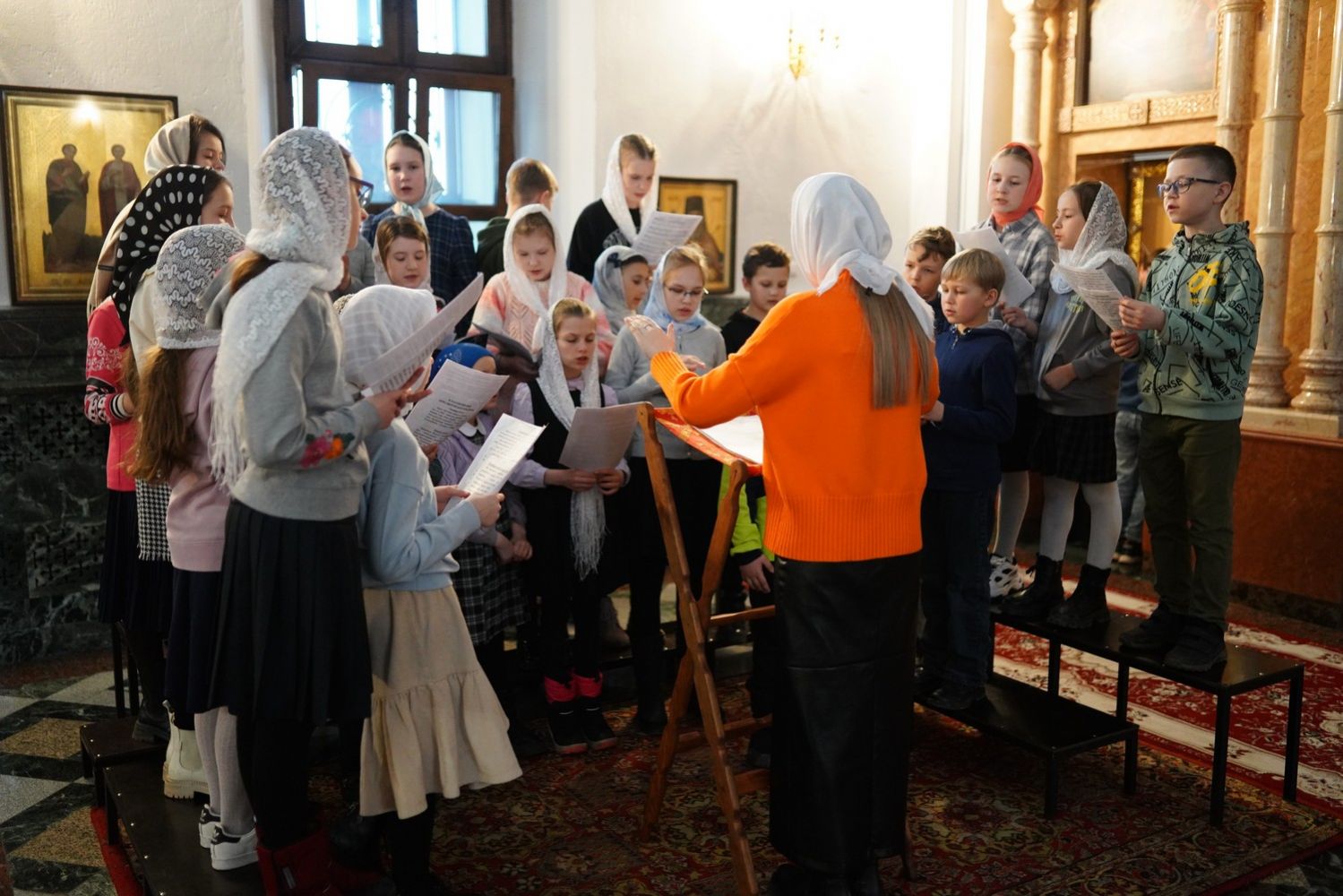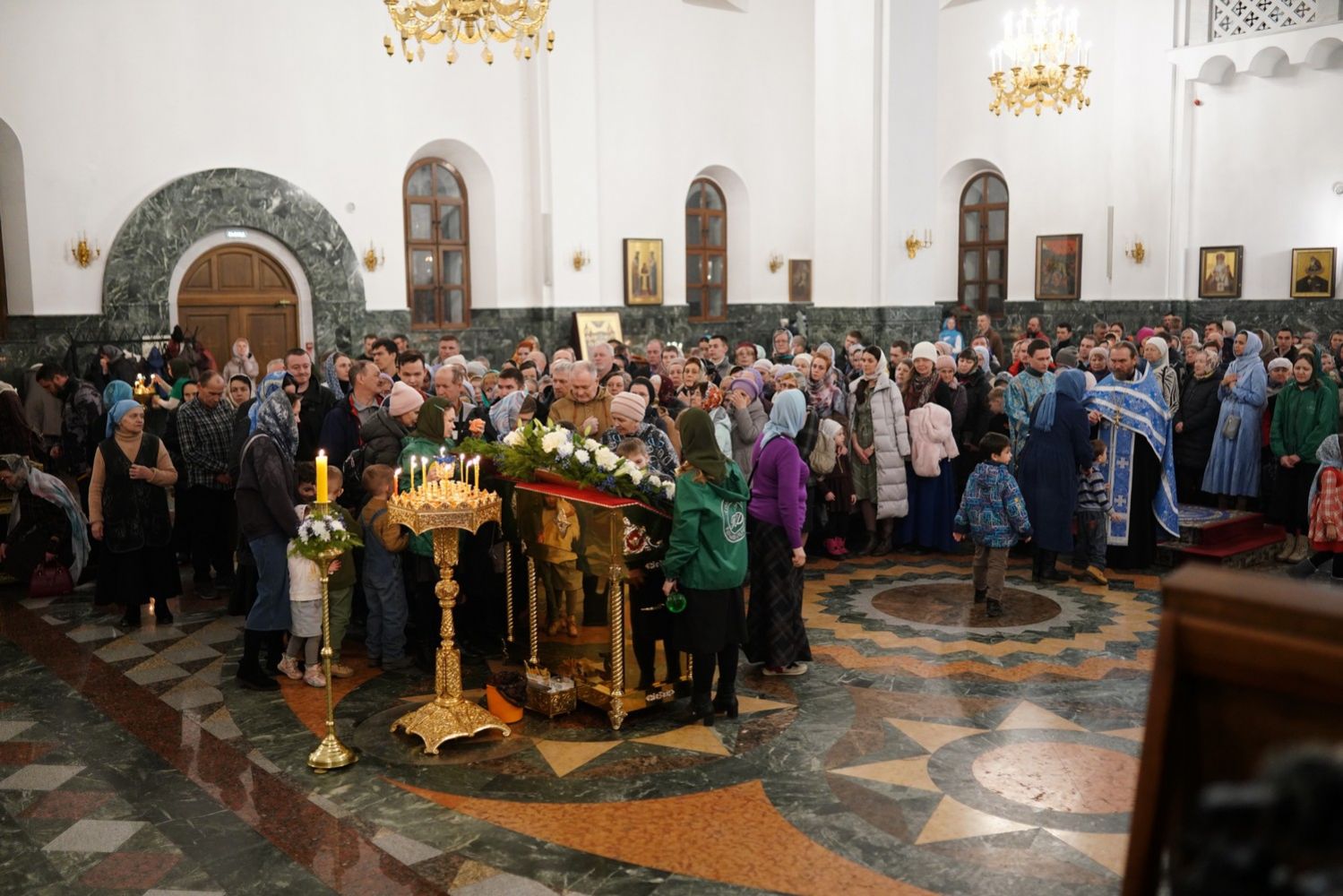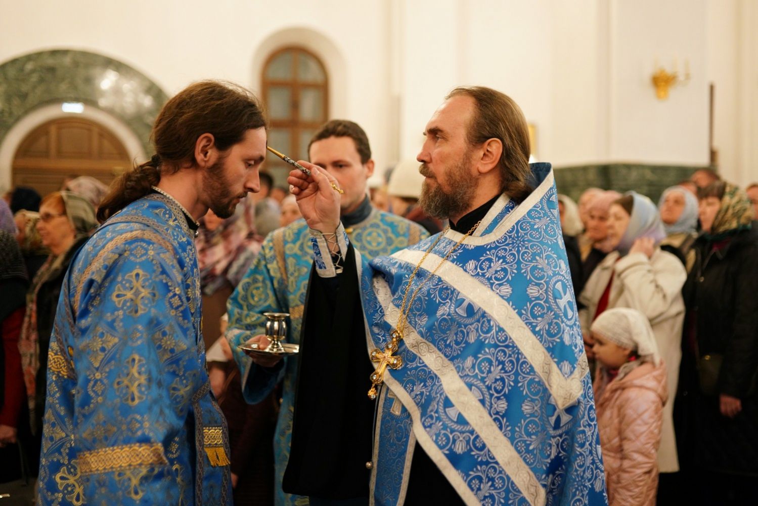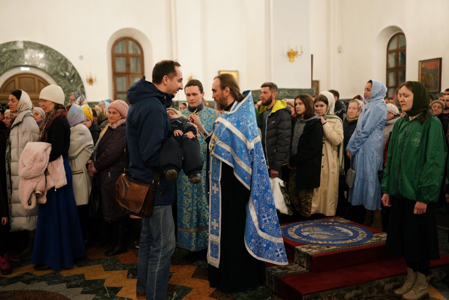 Архипастырю сослужили секретарь Йошкар-Олинского епархиального управления архимандрит Серафим (Пасанаев), ключарь собора протоиерей Сергий Поглазов, клирики собора и протодиакон Михаил Козловский. Пели старший и младший составы детско-юношеского хора «Благовест» под руководством регентов Татьяны Черновой и Софии Андреевой. Часть песнопений звучала в исполнении хора церковно- и священнослужителей Йошкар-Олинской епархии под управлением иерея Евгения Самойлова.