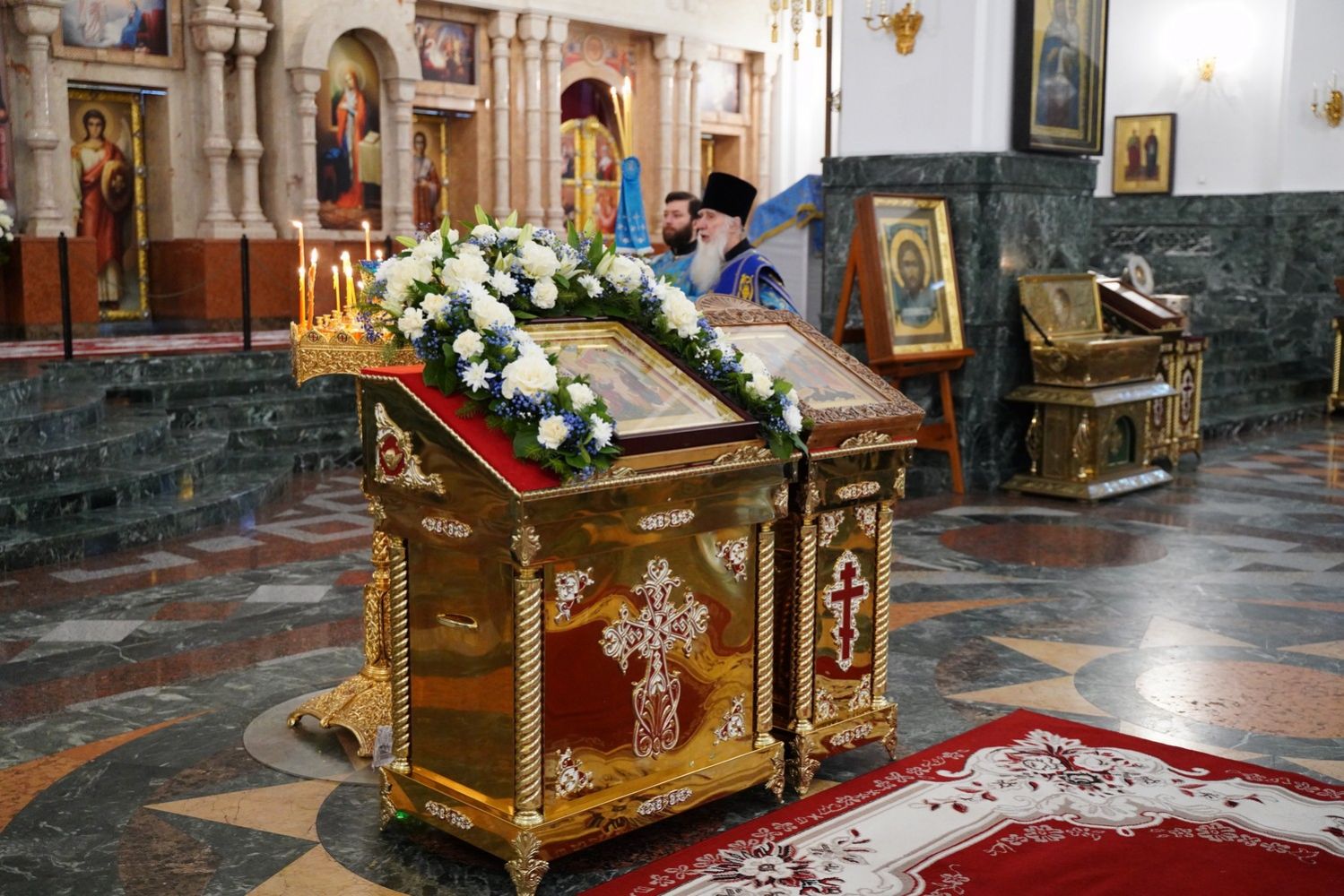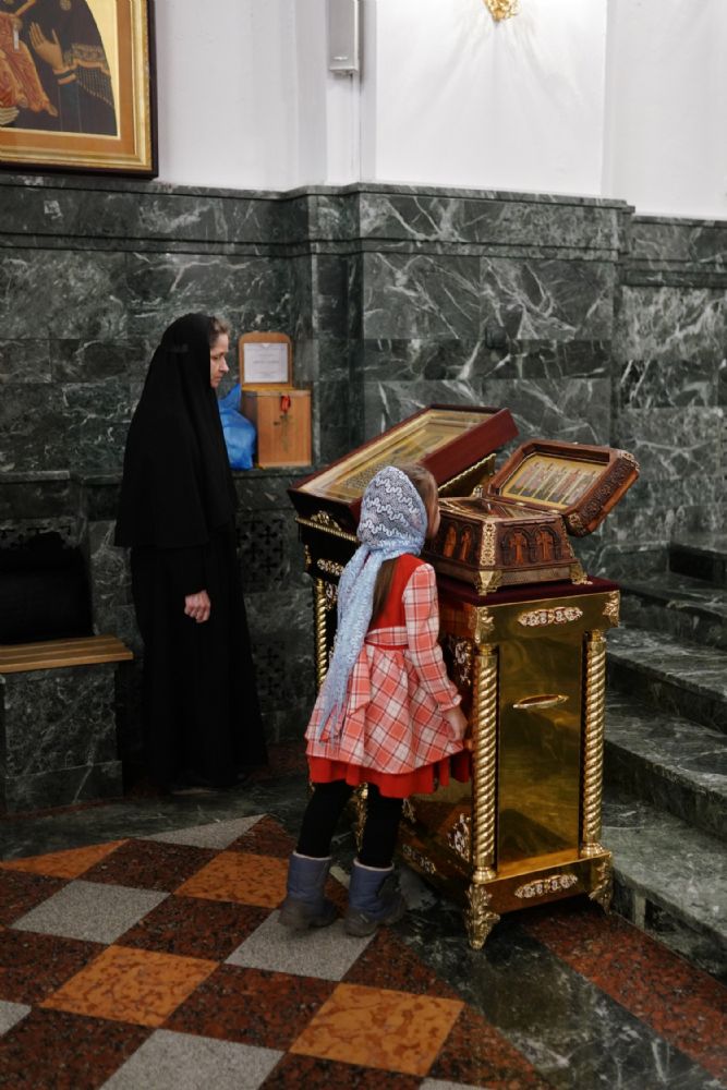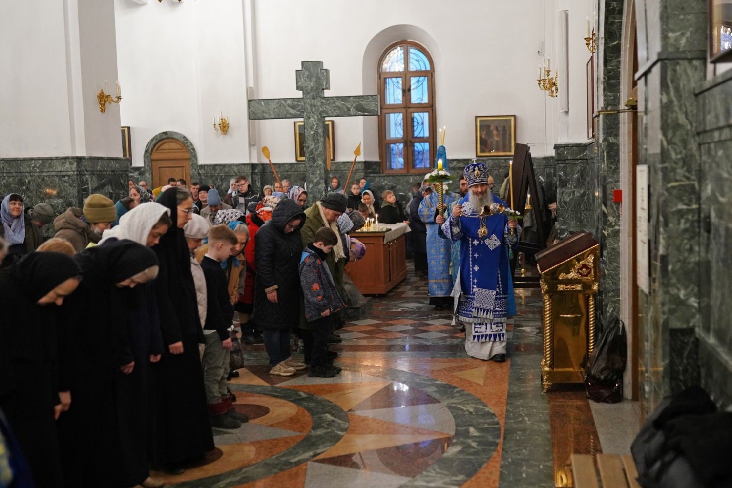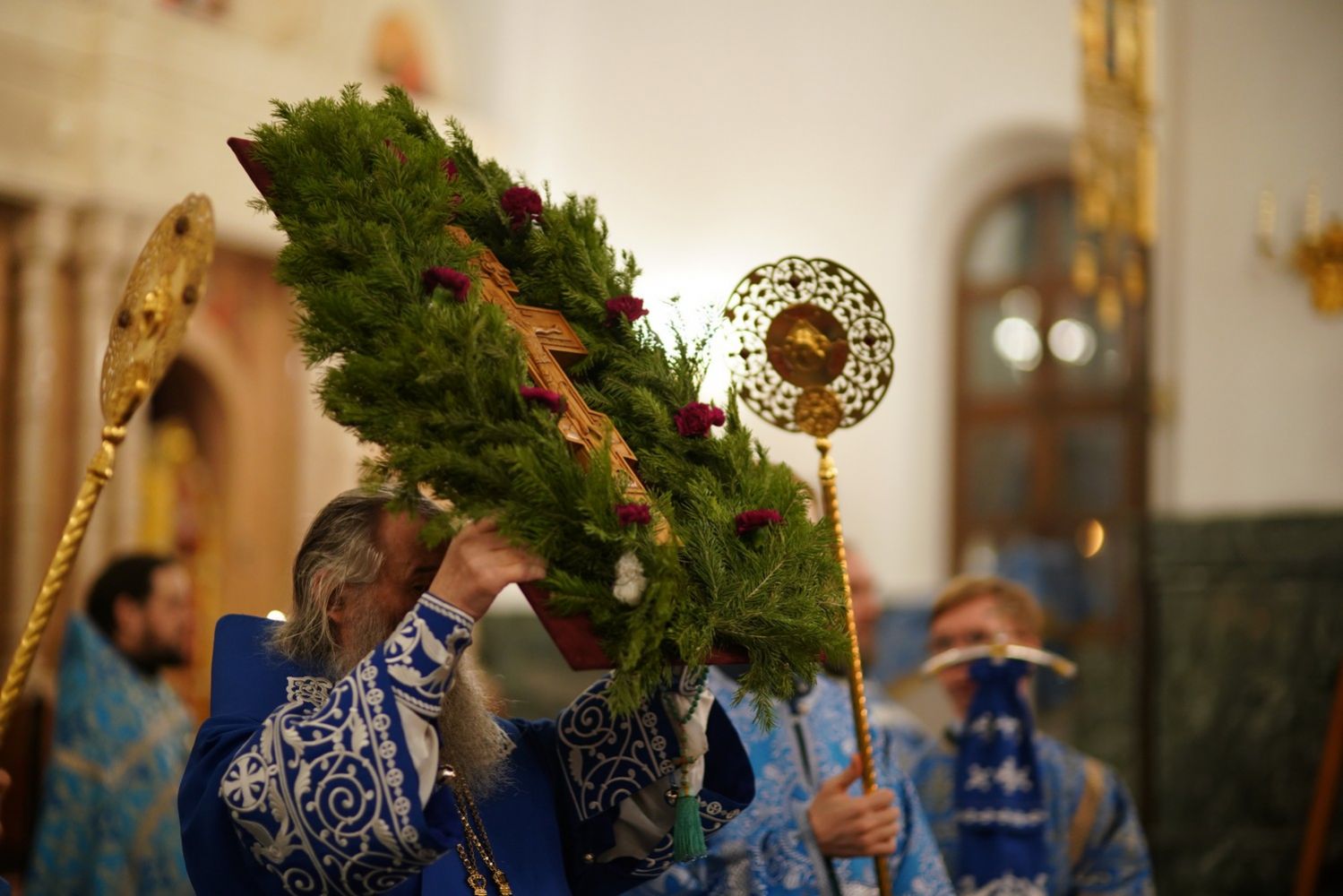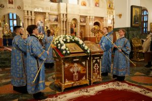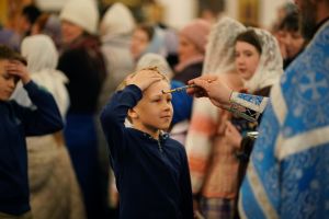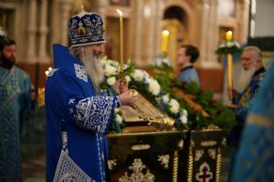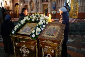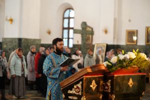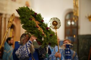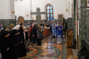 После великого славословия в конце службы в центр храма был торжественно вынесен украшенный Крест Господень. После поклонения Кресту верующие помазывались освященным елеем и вкушали литийный хлеб.