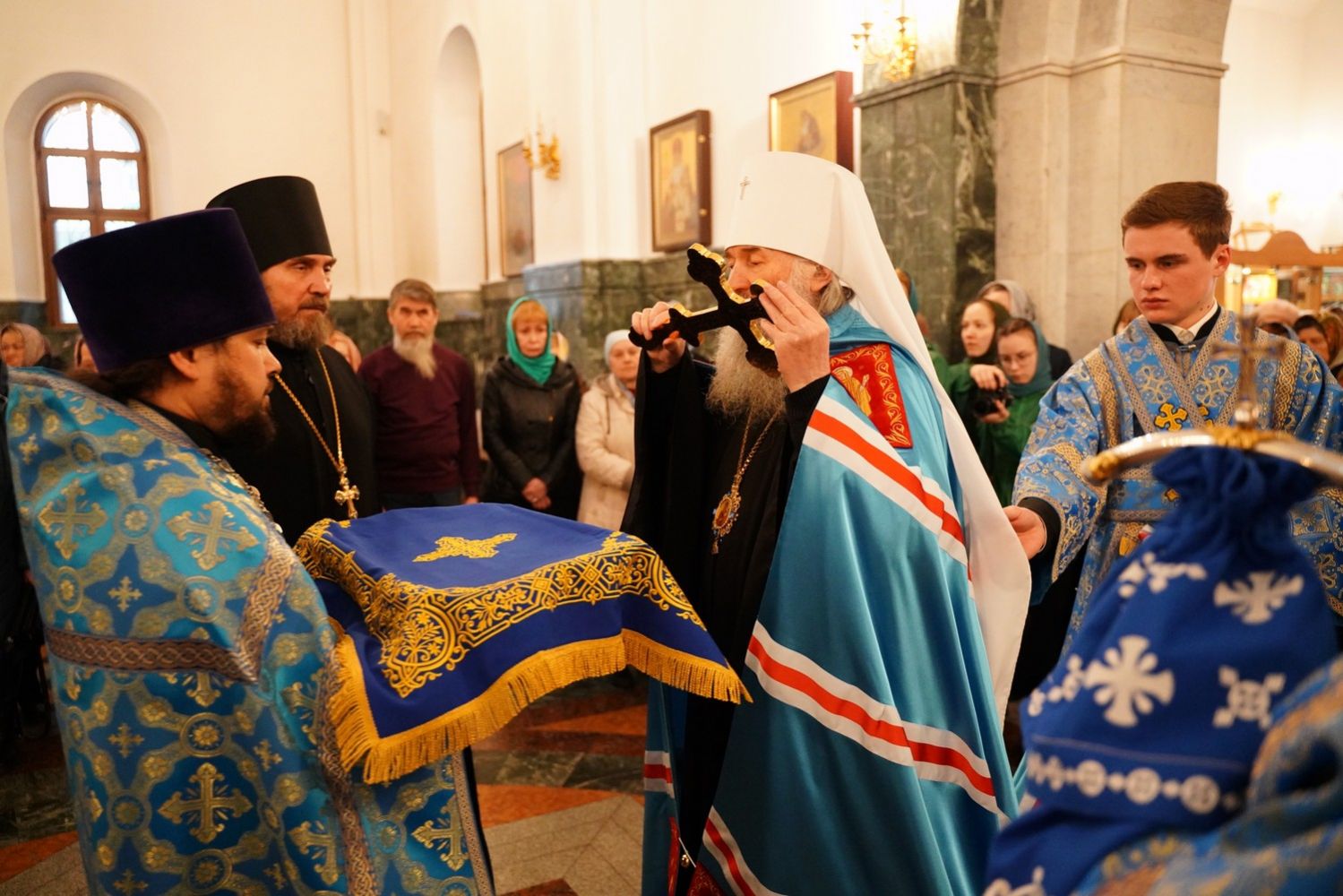 Вечером 6 апреля, накануне Крестопоклонной Недели Великого поста, праздника Благовещения Пресвятой Богородицы, митрополит Йошкар-Олинский и Марийский Иоанн возглавил всенощное бдение в Благовещенском кафедральном соборе.