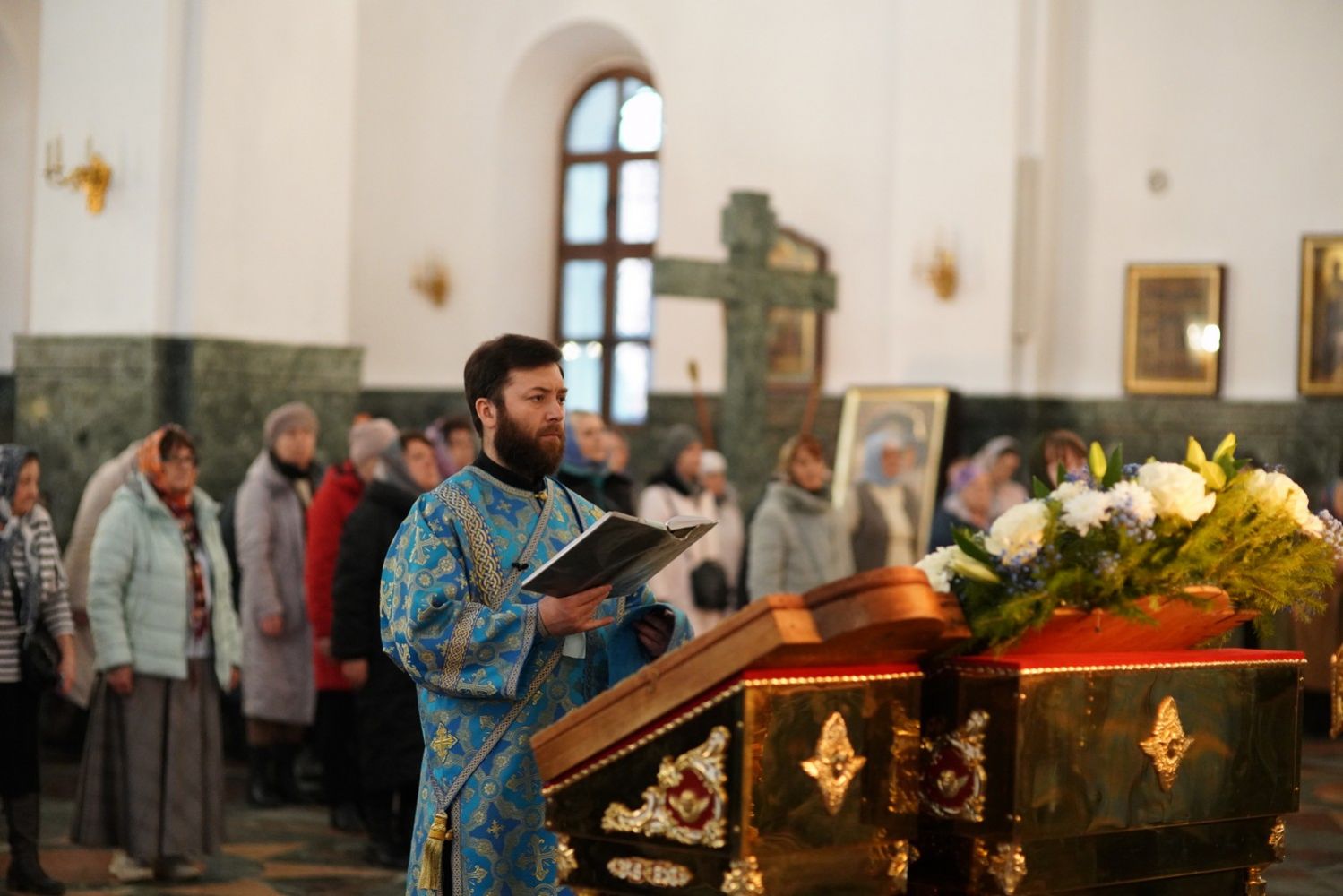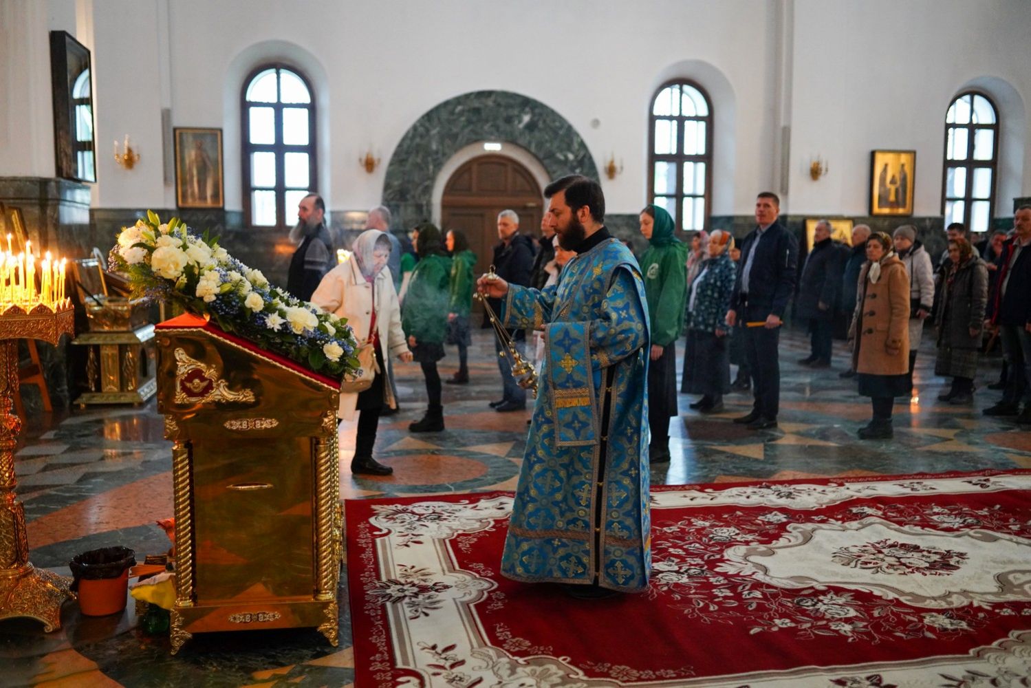 На литии освящались хлебы, пшеница, вино и елей. Евангельское чтение посвящалось празднику Благовещения (Лк.1:39-49,56).