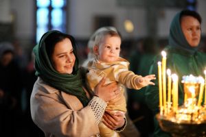 На вечерне в честь праздника читались ветхозаветные паримии из книг Исхода, Притчей Соломоновых, Бытия и Пророка Иезекииля, прообразующие непорочное зачатие Девы Марии и воплощенную Премудрость – вторую ипостась Пресвятой Троицы.