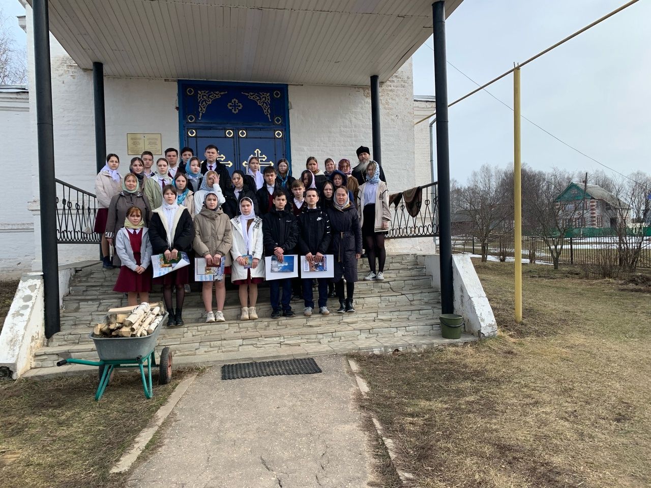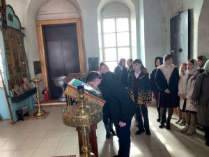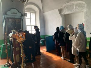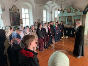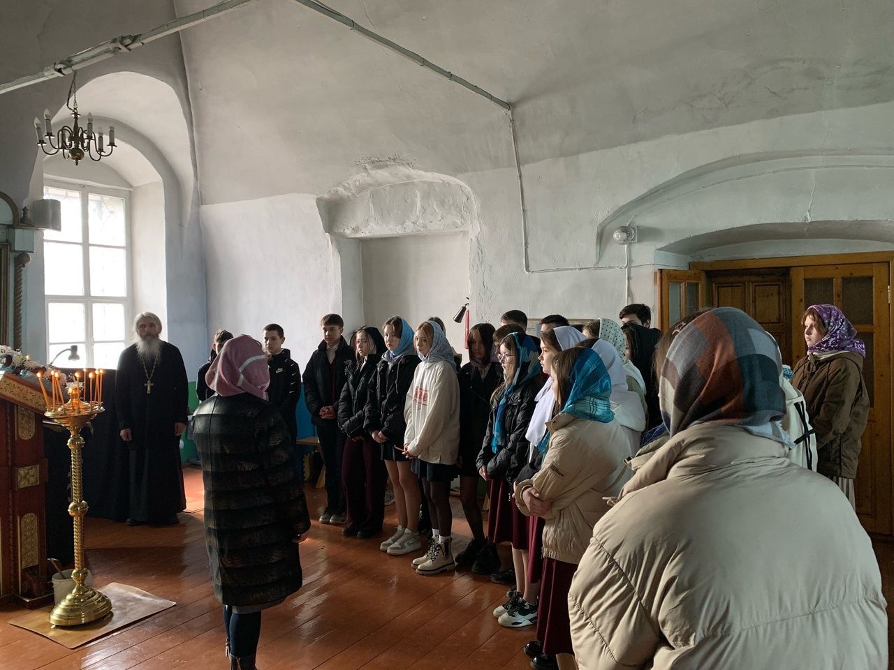 Батюшка радушно встретил прибывших из Коркатово ребят и педагогов, провёл для них экскурсию по храму и его территории. Рассказал об истории храма, его святынях, о чудотворных иконах. Поговорили и о продолжающейся Крестопоклонной седмице Великого поста.