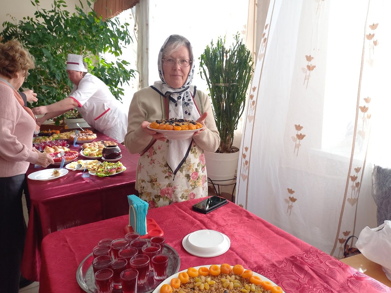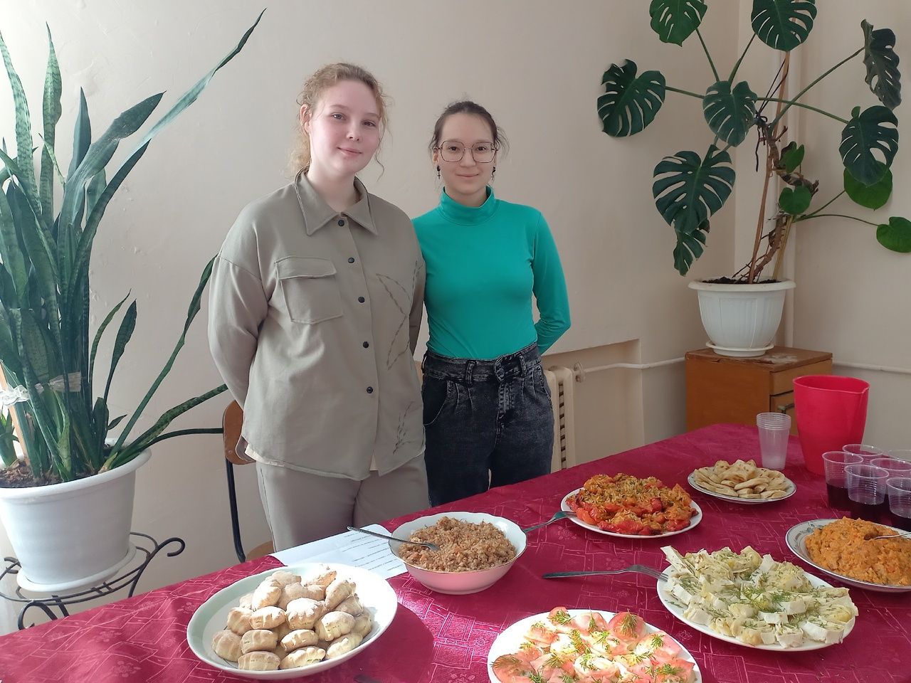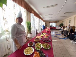 Ярким моментом праздника стало выступление певчих хора храма Николая Чудотворца – чистые мелодичные звуки дарили ощущение света и тепла. На такой оптимистичной ноте участники представили свои кулинарные шедевры – столы ломились от красивых и аппетитных блюд! Чего здесь только ни было: пряники, салаты, овощные закуски, блюда из фруктов и сухофруктов, из овощей, круп и т.д. Оценили всю эту красоту гости праздника, сотрудники и студенты техникума, подтвердив, что постная кухня может быть красивой, вкусной и разнообразной!