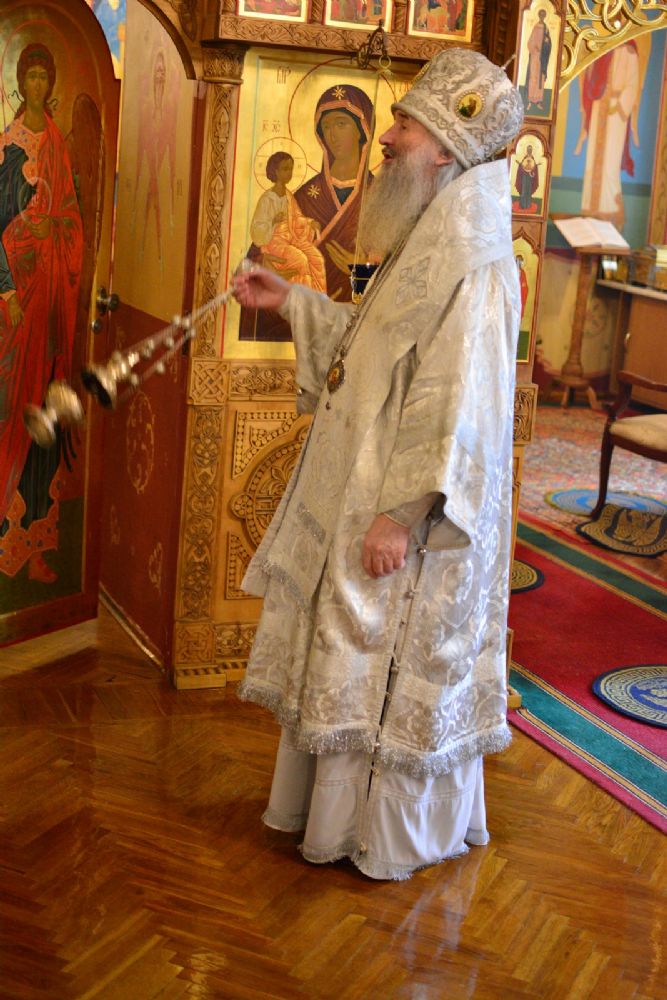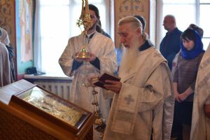 13 апреля, в последнюю в этом году великопостную родительскую субботу, митрополит Йошкар-Олинский и Марийский Иоанн совершил Божественную литургию святителя Иоанна Златоуста в домовом храме епархиального управления в честь иконы Божией Матери «Троеручица».