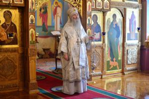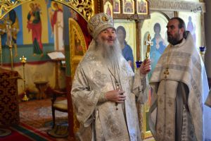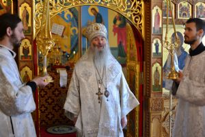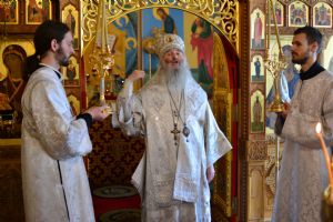 Владыке сослужили секретарь Йошкар-Олинского епархиального управления архимандрит Серафим (Пасанаев) и протодиакон Михаил Козловский. Песнопения исполнял малый состав хора «Благовест» под управлением Татьяны Черновой.