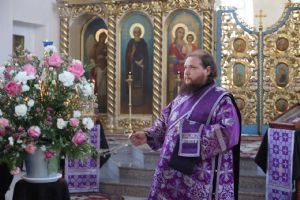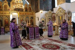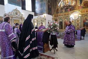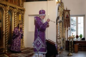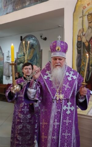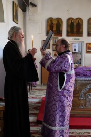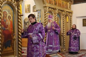 Его Преосвященству сослужили клирики собора, песнопения исполнял архиерейский хор.