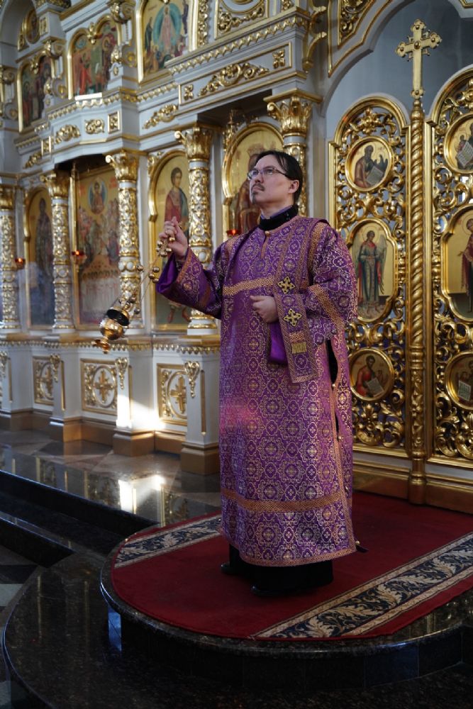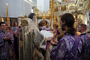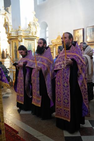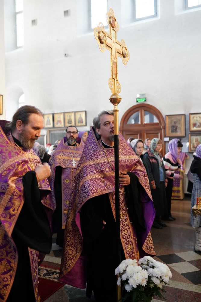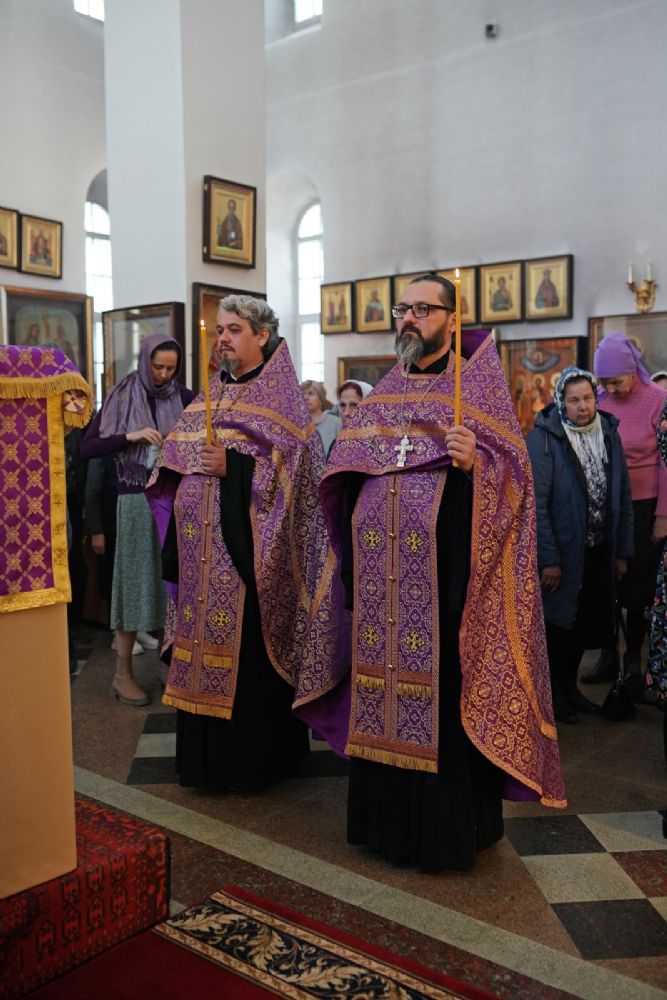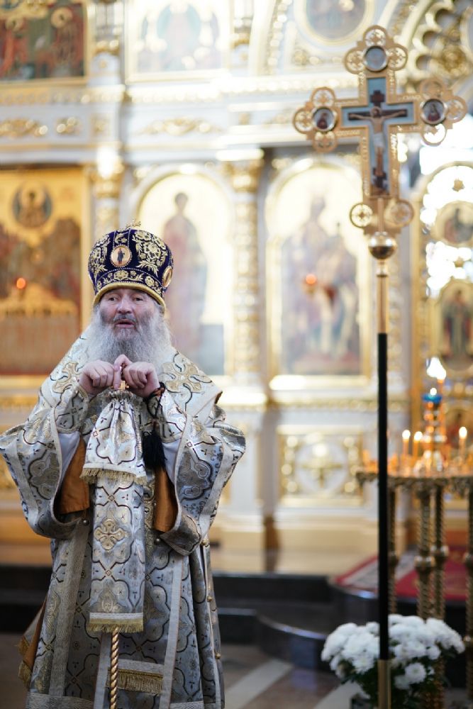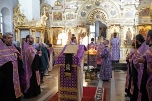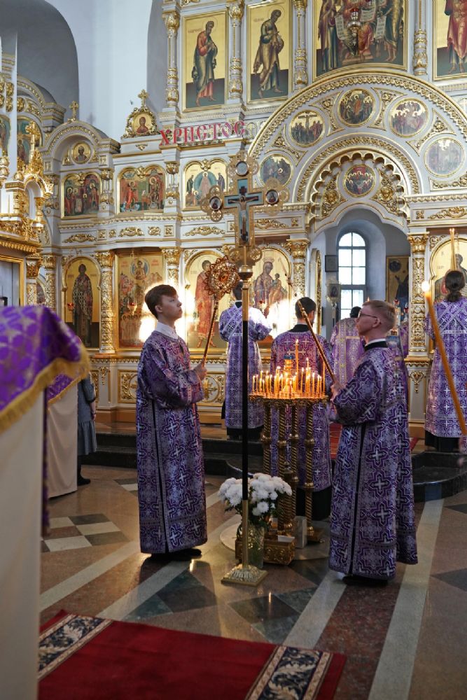 Владыке сослужили секретарь Йошкар-Олинского епархиального управления архимандрит Серафим (Пасанаев), настоятель собора иерей Александр Лоскутов, клирики храма и протодиакон Михаил Козловский. Песнопения исполнял хор храма под управлением Натальи Поповой.