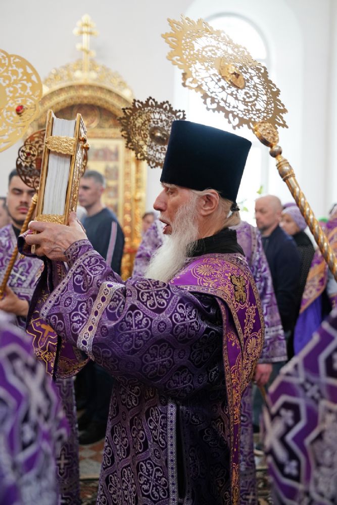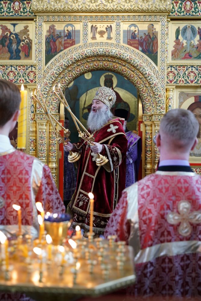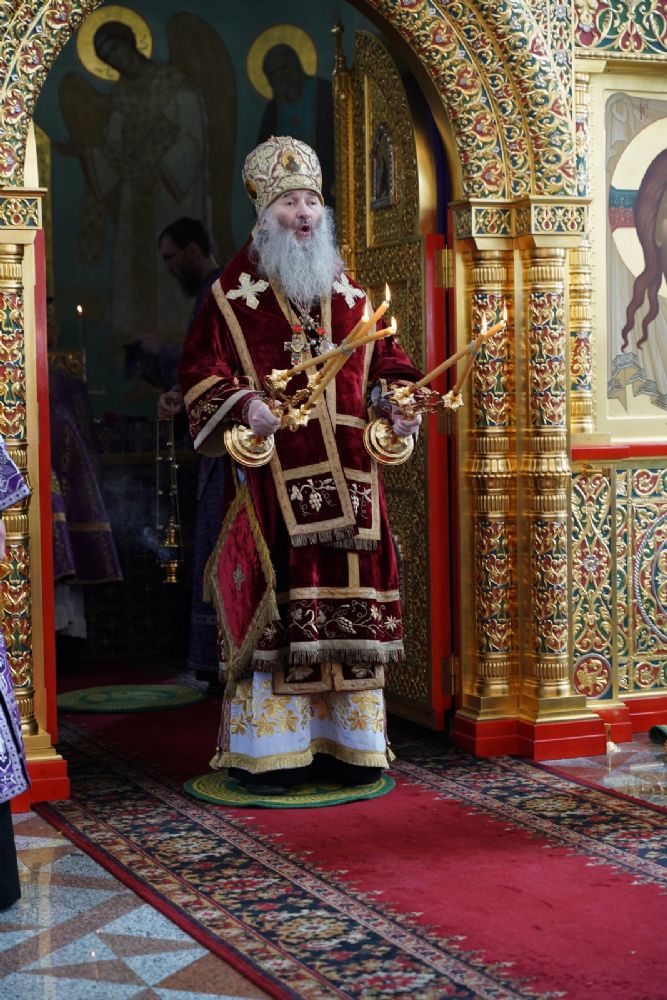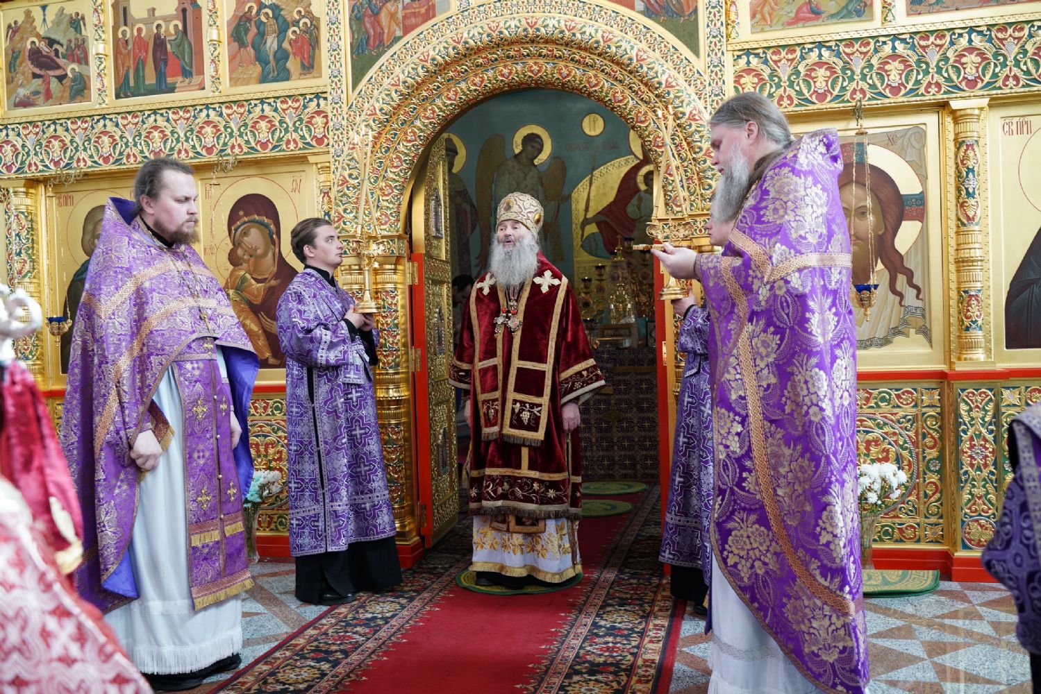 Архипастырю сослужили настоятель храма протоиерей Александр Бачурин, клирики храма иерей Константин Домрачев, иерей Виктор Умрихин и диакон Алексий Ершов, а также протодиакон Михаил Козловский. Песнопения исполнял хор храма под управлением регента Елены Умрихиной.