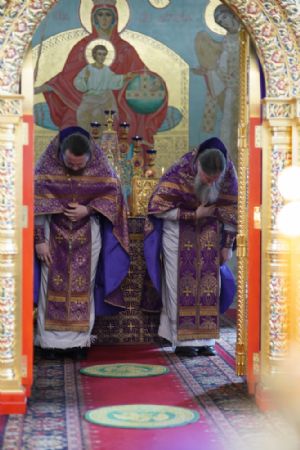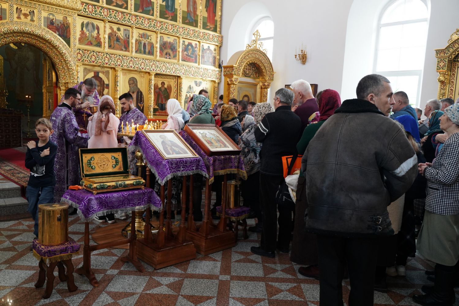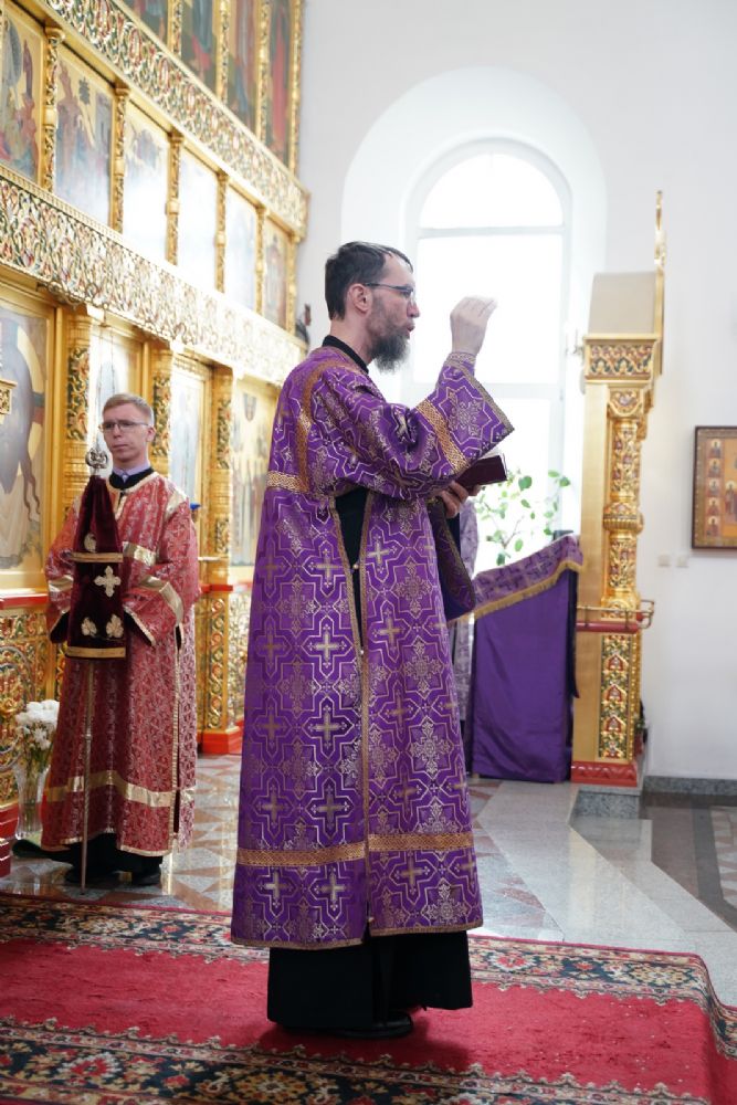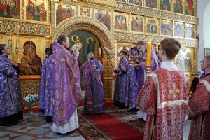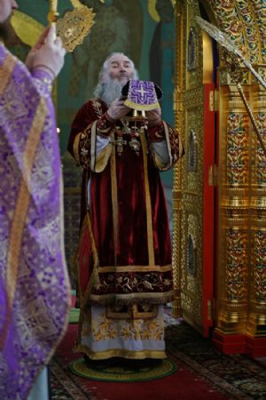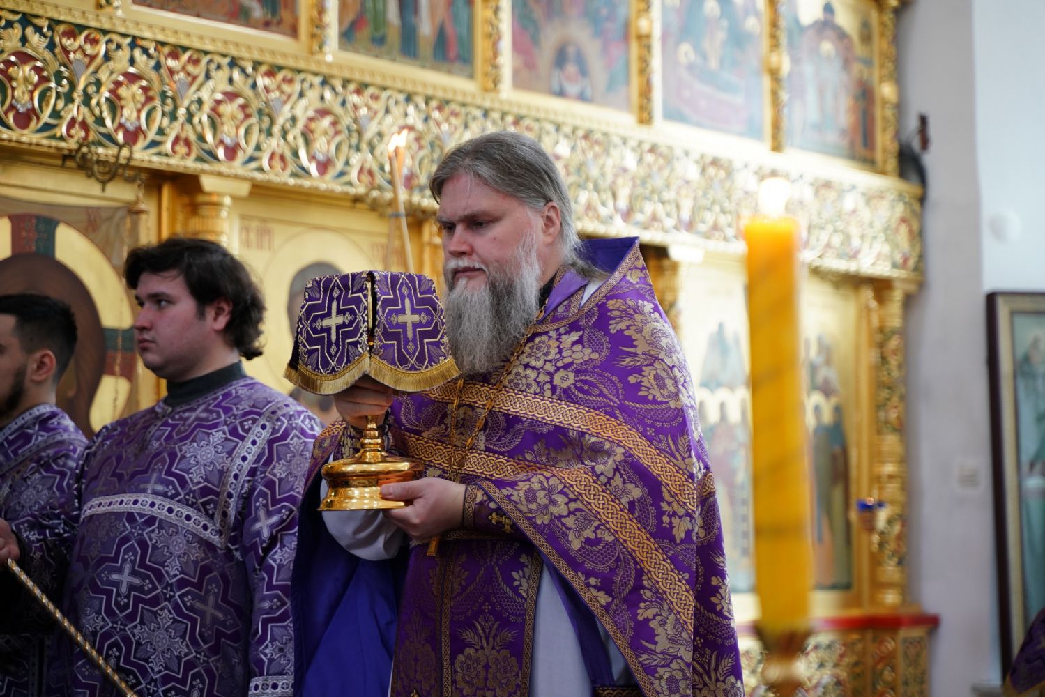 Архипастырю сослужили настоятель храма протоиерей Александр Бачурин, клирики храма иерей Константин Домрачев, иерей Виктор Умрихин и диакон Алексий Ершов, а также протодиакон Михаил Козловский. Песнопения исполнял хор храма под управлением регента Елены Умрихиной.