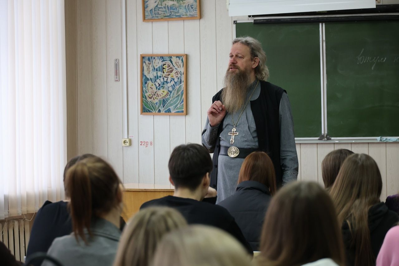 В дружеской беседе со студентами отец Лука затронул темы нравственности и целомудрия, выбора спутника жизни и семейного счастья, поговорил о совести как нравственном мериле человека и многом другом. Ребята активно участвовали в поэтическом диалоге на тему «духовность в русской классической литературе», где величайшие классические произведения зиждутся на христианской нравственности, о чем свидетельствуют многие произведения А.С. Пушкина, Ф.М. Достоевского, А.Н. Островского.
