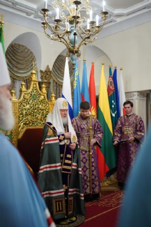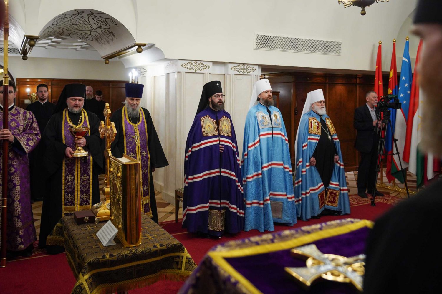 Его Святейшеству сослужили: митрополит Крутицкий и Коломенский Павел, Патриарший наместник Московской митрополии; митрополит Минский и Заславский Вениамин, Патриарший экзарх всея Беларуси; митрополит Воскресенский Григорий, управляющий делами Московской Патриархии, первый викарий Патриарха Московского и всея Руси по г. Москве; архиепископ Единецкий и Бричанский Никодим; архиепископ Зеленоградский Савва, заместитель управляющего делами Московской Патриархии; епископ Раменский Алексий, личный секретарь Святейшего Патриарха Кирилла.