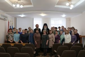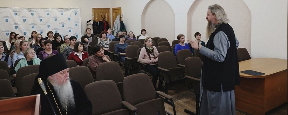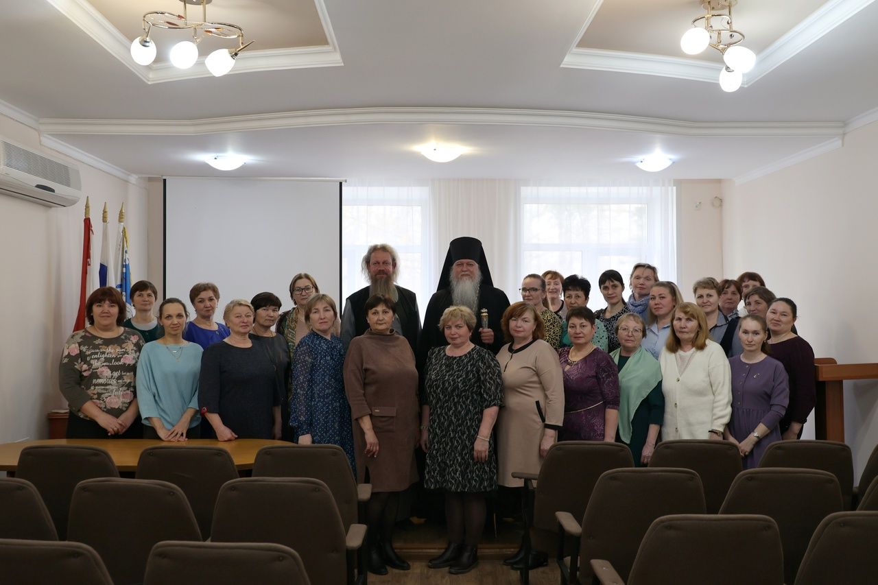 Во второй половине дня отец Лука провел беседу с педагогическим сообществом и работниками культуры Волжского района на тему «Интеграция отечественных традиционных ценностей в современное образовательное пространство».