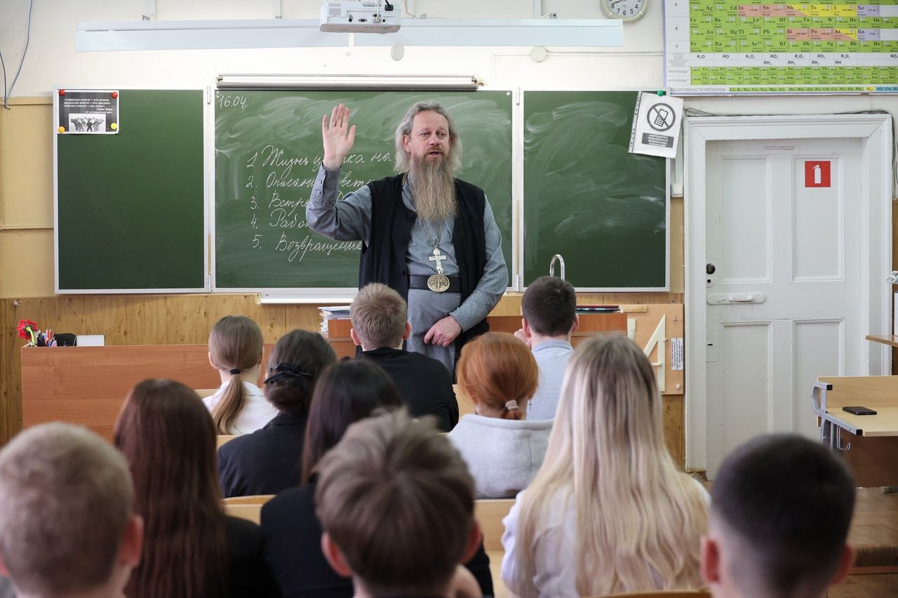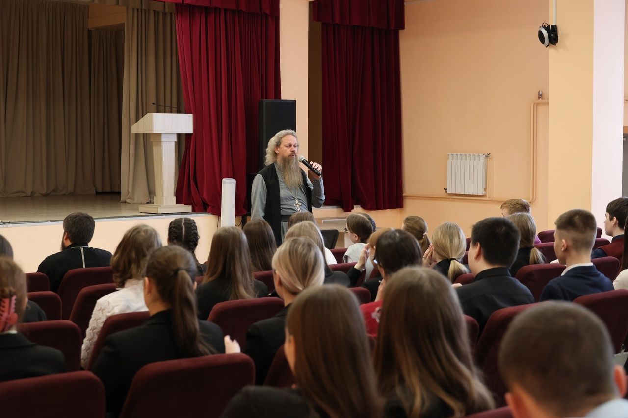 В первой половине дня отец Лука встретился со старшеклассниками двух общеобразовательных учреждений Волжска: средней школы № 9 им. А.С. Пушкина и средней школы № 5 с углубленным изучением отдельных предметов.