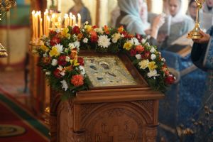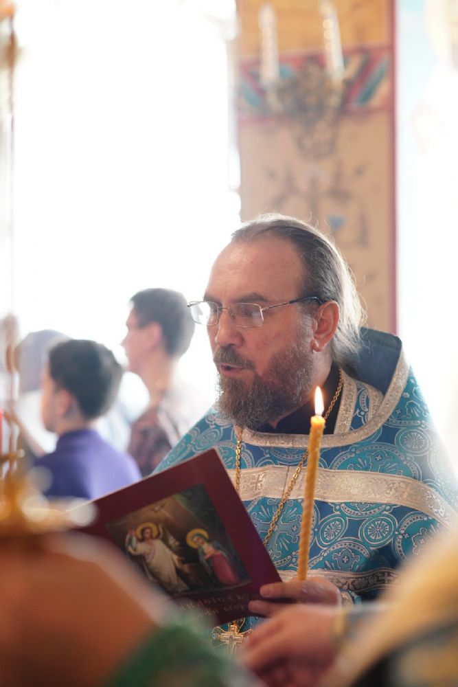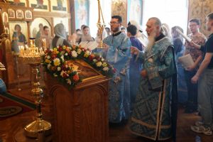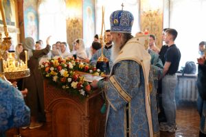 Архипастырю сослужили секретарь Йошкар-Олинского епархиального управления архимандрит Серафим (Пасанаев) и протодиакон Михаил Козловский. Песнопения исполнял детско-юношеский хор «Благовест» под управлением регента Татьяны Черновой.