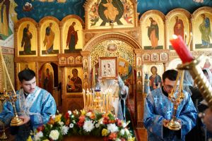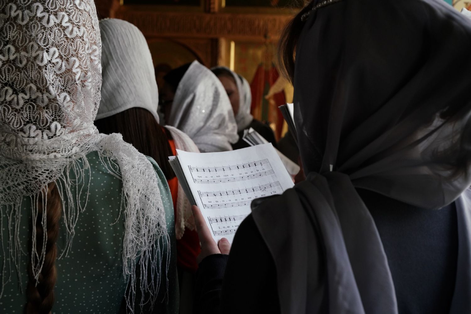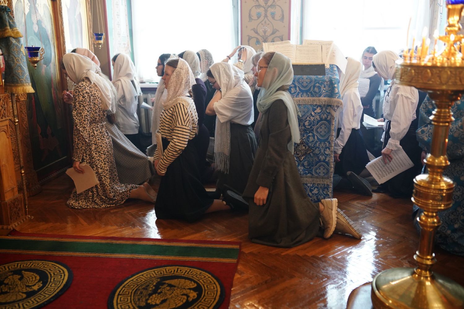 Херетизмы Акафиста (воззвания «Радуйся…» – от греческого «Хэре…») вместе со священством и хором пели все прихожане.