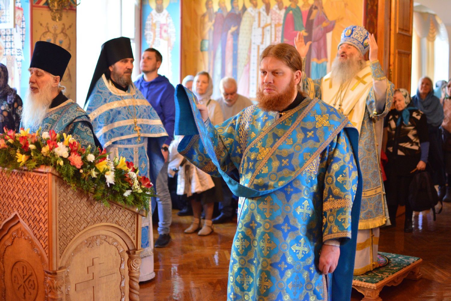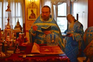 Архипастырю сослужили секретарь Йошкар-Олинского епархиального управления архимандрит Серафим (Пасанаев), протодиакон Михаил Козловский и клирик Благовещенского кафедрального собора диакон Андрей Дружинин. Песнопения исполнял хор «Благовест» под управлением Татьяны Черновой.