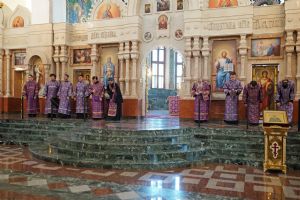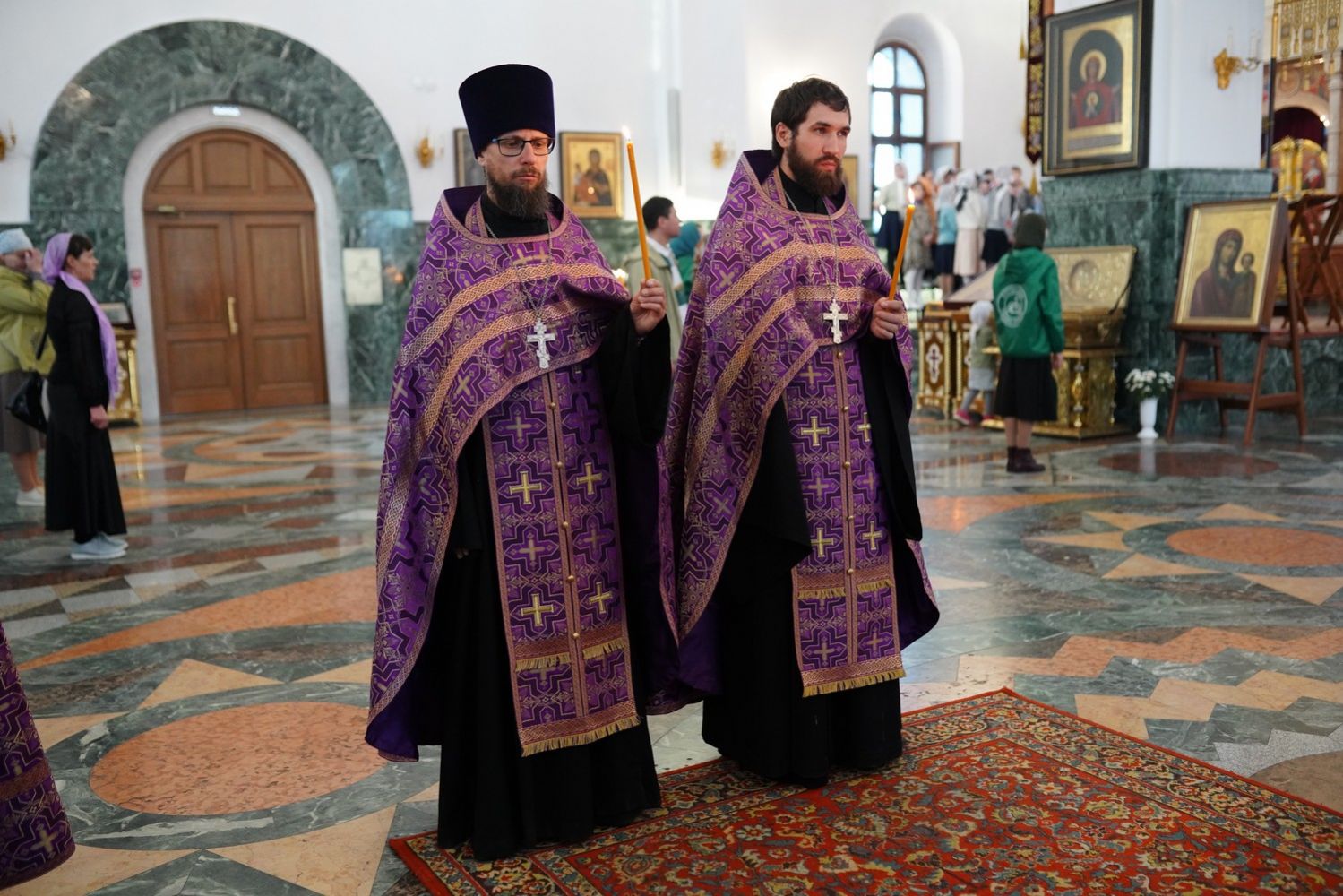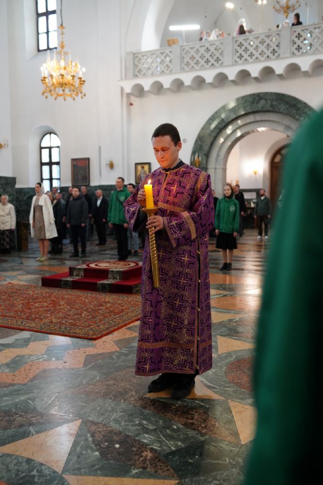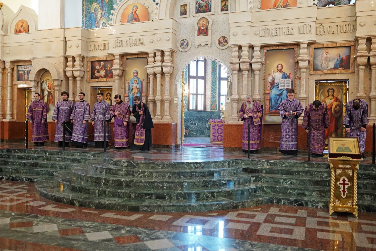 Владыке сослужили клирики собора иерей Никифор Захаров, иерей Евгений Самойлов, иерей Александр Староверов, иерей Иоанн Милютин и диакон Артемий Бобоч, а также протодиакон Михаил Козловский. Пели старший и младший составы детско-юношеского хора «Благовест» под управлением регентов Татьяны Черновой и Софии Андреевой.