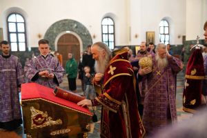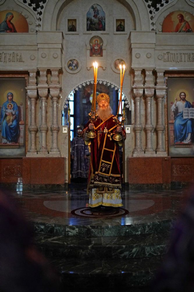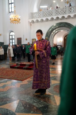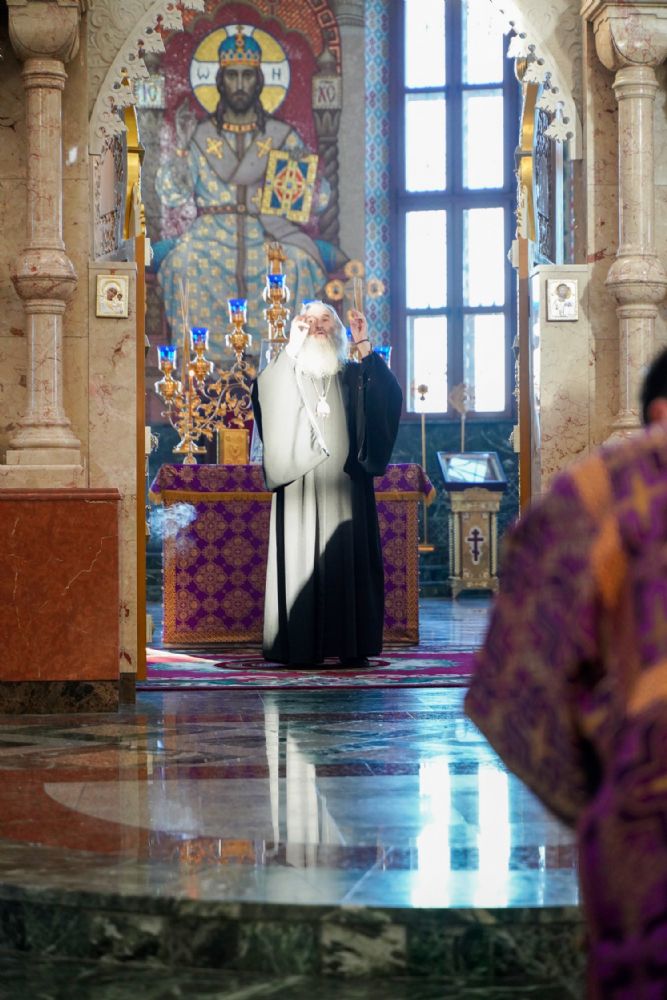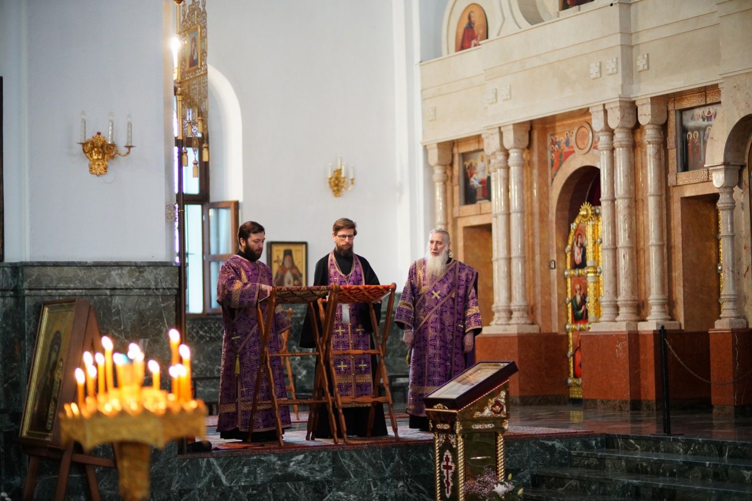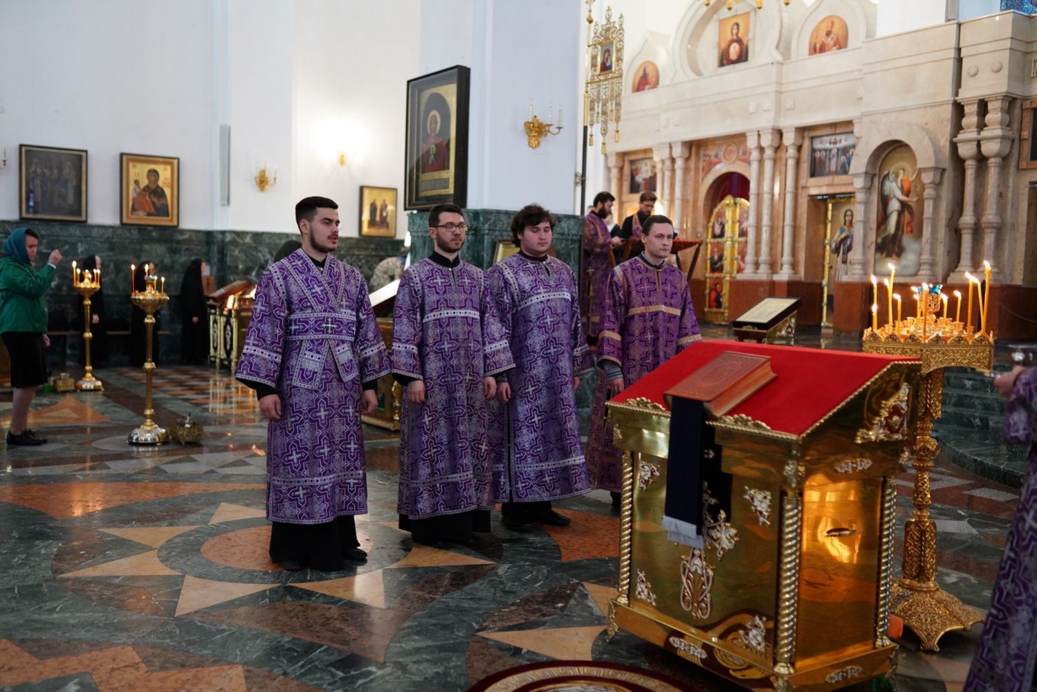 Владыке сослужили клирики собора иерей Никифор Захаров, иерей Евгений Самойлов, иерей Александр Староверов, иерей Иоанн Милютин и диакон Артемий Бобоч, а также протодиакон Михаил Козловский. Пели старший и младший составы детско-юношеского хора «Благовест» под управлением регентов Татьяны Черновой и Софии Андреевой.