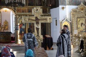 Архипастырю сослужил клирики собора диакон Иоанн Захаров и диакон Герман Михайлов, песнопения исполнял архиерейский хор.