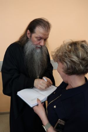 Отец Артемий познакомил слушателей с содержанием написанных им книг, проведя педагогические параллели со своими творческими замыслами.