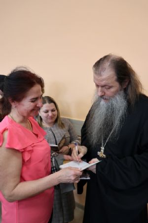 По окончании встречи руководитель отдела образования Городского округа «Город Волжск» Татьяна Низамутдинова вручила батюшке благодарственное письмо за многолетнее плодотворное сотрудничество и усердные труды на ниве духовно-нравственного просвещения, а отец Артемий подарил педагогам свои книги с автографом.