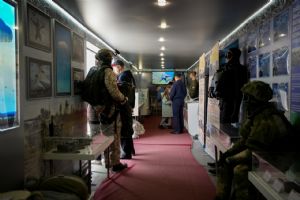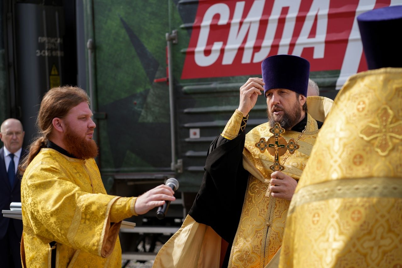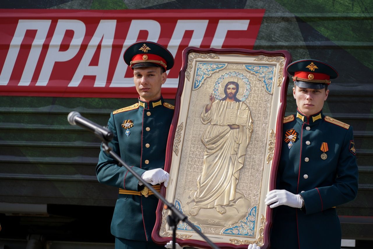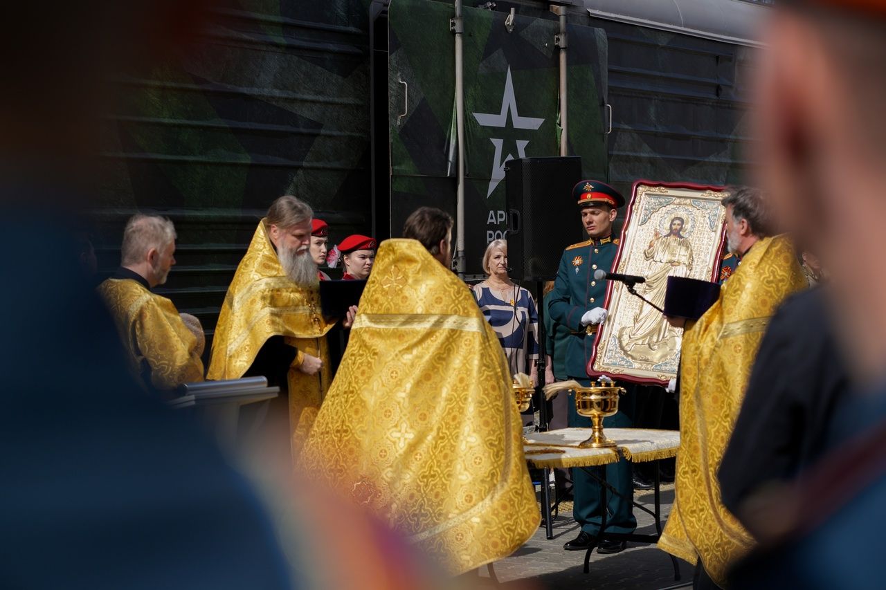 После торжественной встречи и молебна все желающие смогли посетить поезд-музей, послушать интересные рассказы экскурсоводов. В составе поезда – девять тематических вагонов, внутри которых размещены выставки, посвященные развитию Сухопутных войск, Воздушно-космических сил, Военно-морского флота, Воздушно-десантных войск, Главного военно-политического управления ВС РФ и юнармейскому движению. На четырех платформах посетители увидели образцы новейшей техники российской армии и трофейные боевые машины, привезенные из зоны Специальной военной операции.