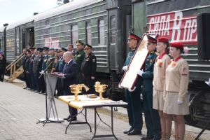 Поезд начал шествие по России 23 февраля нынешнего года, а завершит маршрут в День Победы 9 мая, посетив 75 городов РФ.