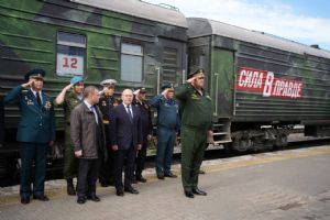 24 апреля в Йошкар-Олу прибыл агитационный поезд Минобороны России «Сила в правде». Это передвижная экспозиция, которая рассказывает о Вооруженных силах Российской Федерации, о мужестве и героизме российских военных. Здесь представлены образцы оружия, архивные документы, информация о героях Великой Отечественной войны и СВО, о военной службе.