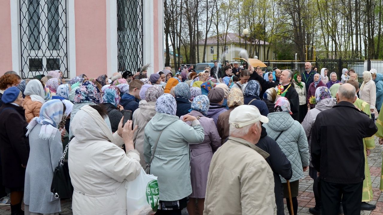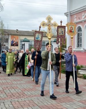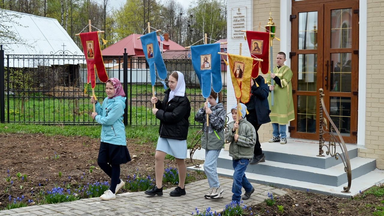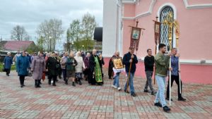 После праздничной Божественной литургии, которую совершил настоятель храма протоиерей Димитрий Вылекжанин, прошел крестный ход вокруг храма – верующие несли чтимую храмовую икону Входа Господня в Иерусалим и веточки вербы.