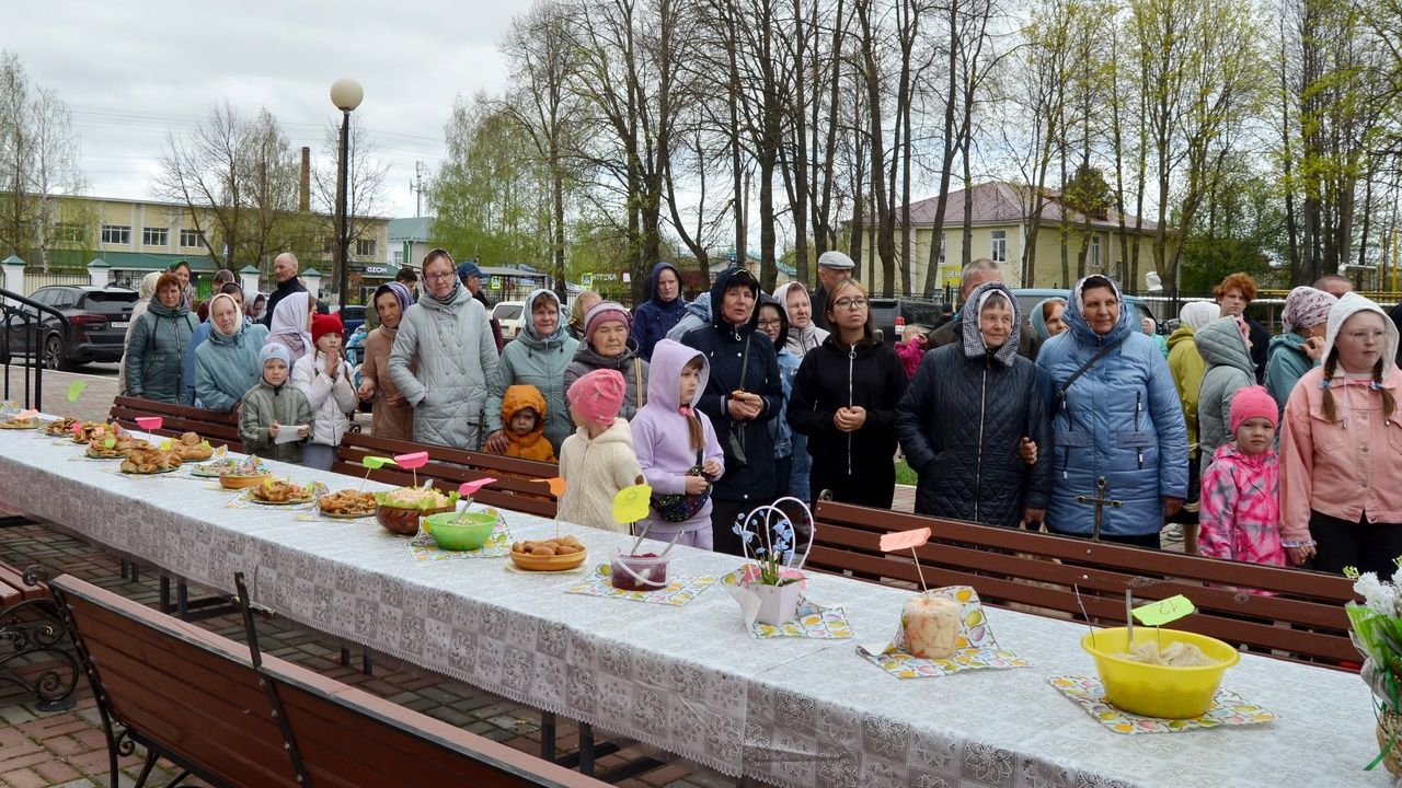 Далее все были приглашены к накрытому на территории храма столу – на приходе прошел ставший уже традиционным фестиваль-конкурс квашеной капусты. Он посвящен местночтимой старице Любушке Оршанской – схимонахине Магдалине, ведь известно, что она была хорошей огородницей и выращивала прекрасную капусту!