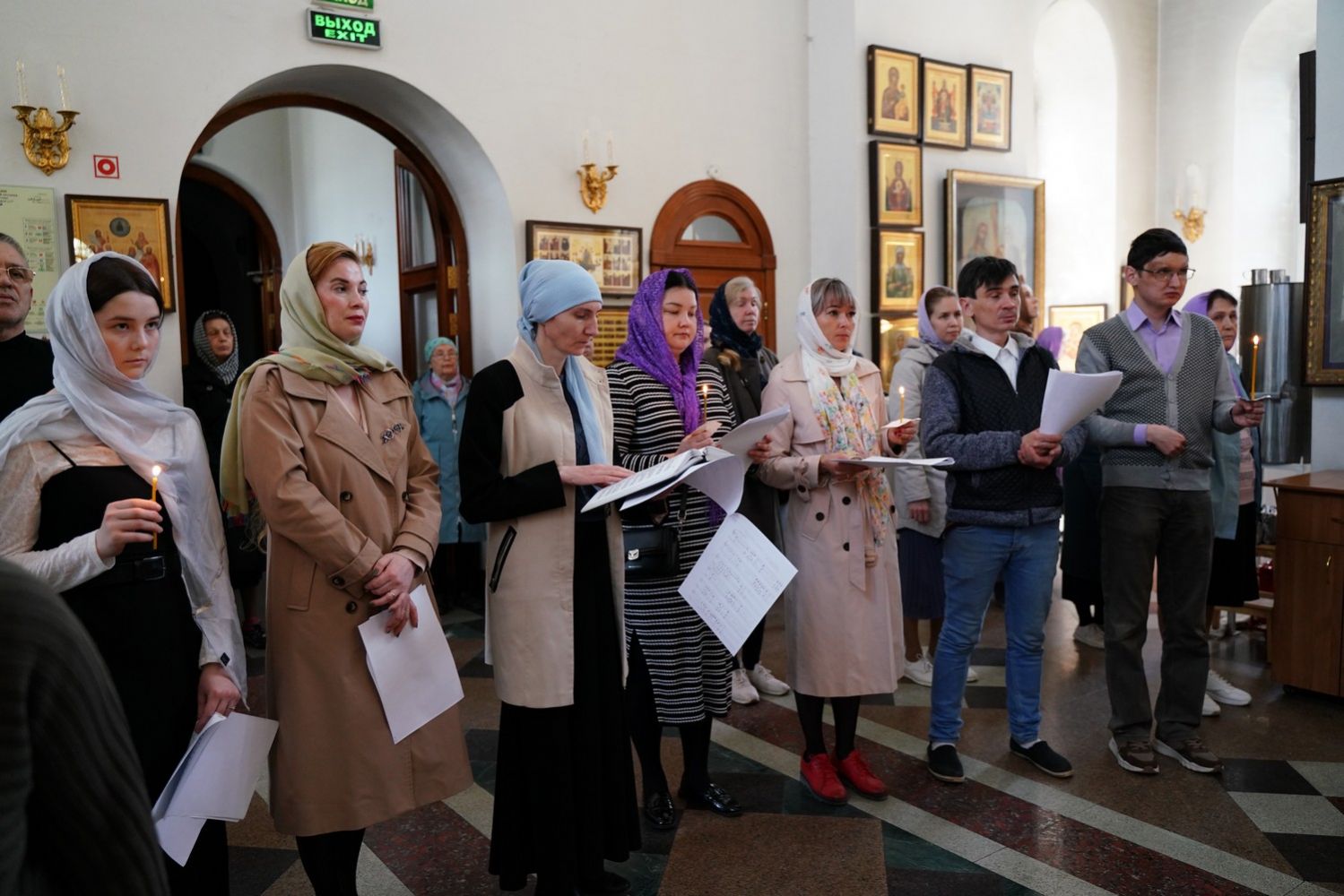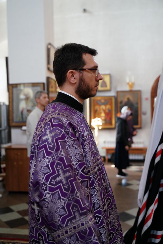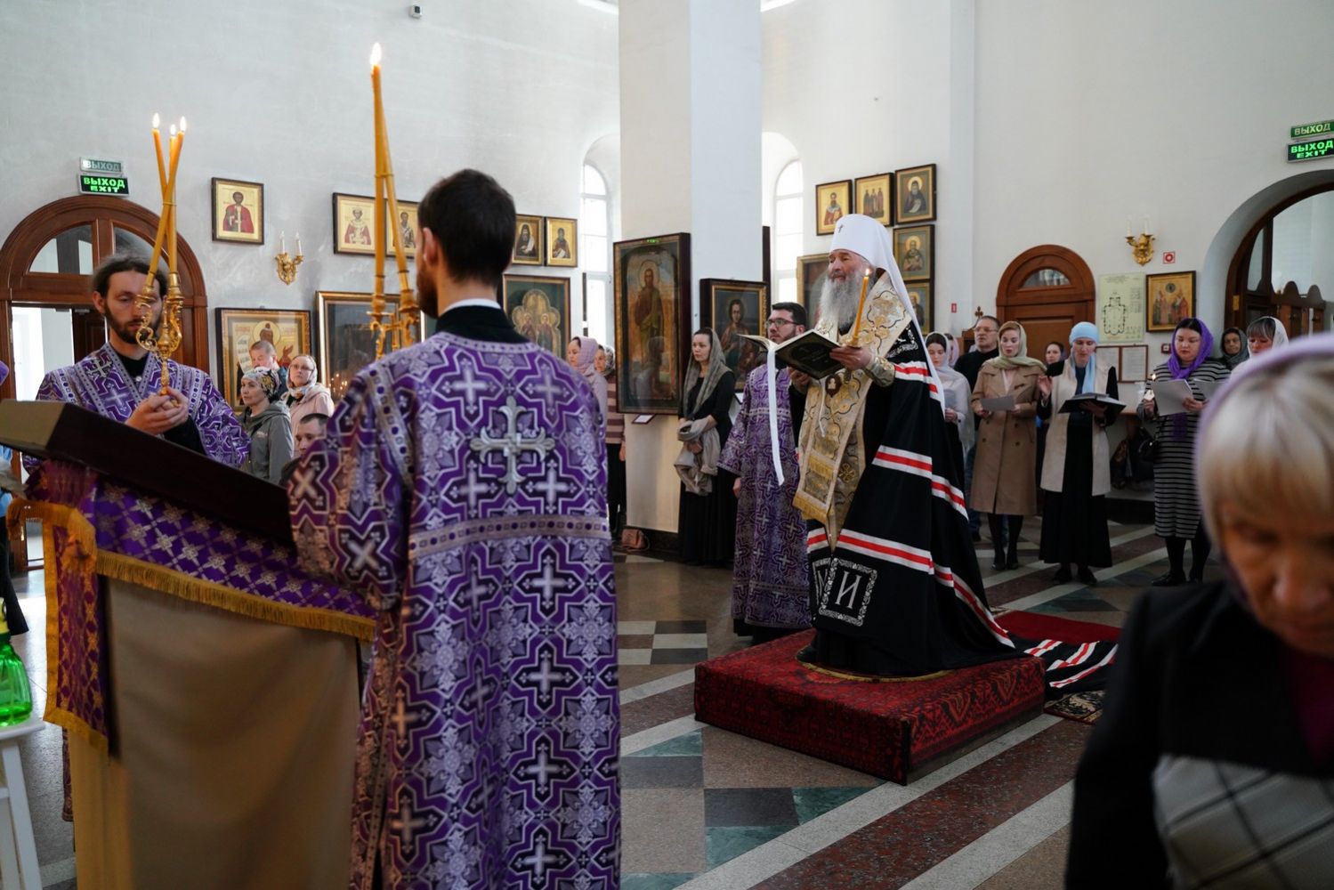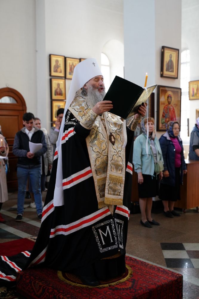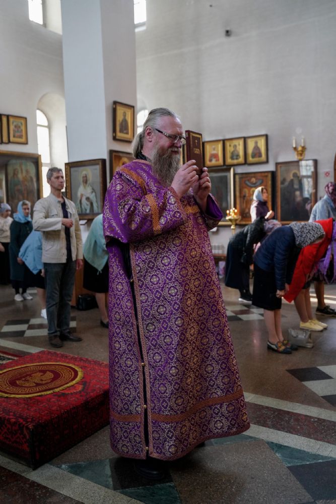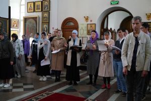Владыке сослужили настоятель храма иерей Александр Лоскутов, клирики храма и протодиакон Михаил Козловский. Песнопения исполнял хор храма под руководством регента Наталии Поповой.