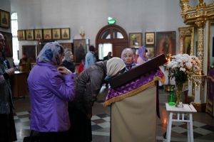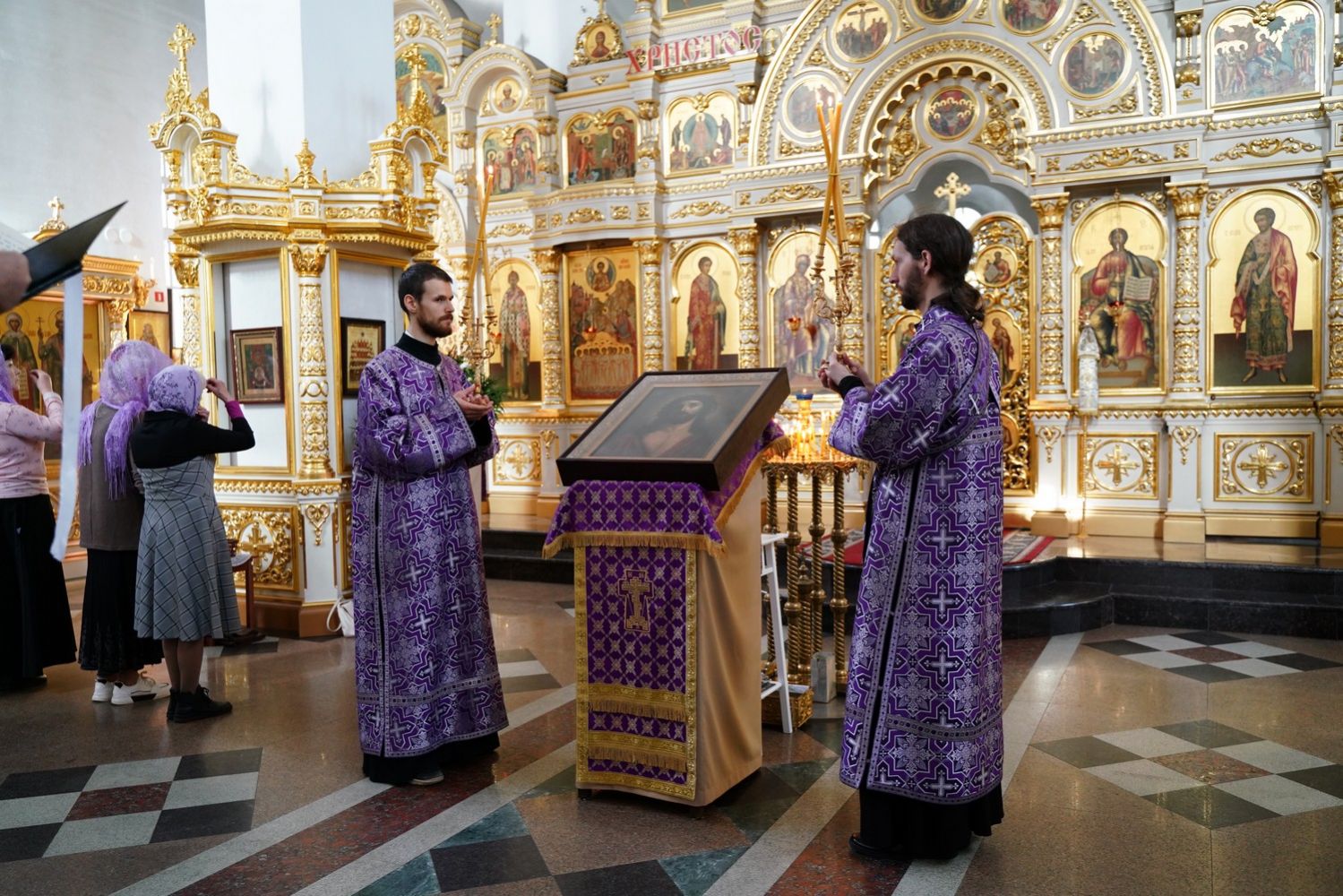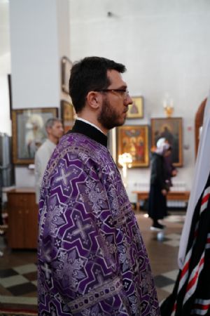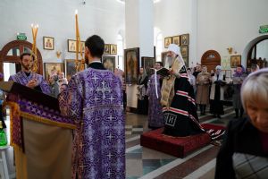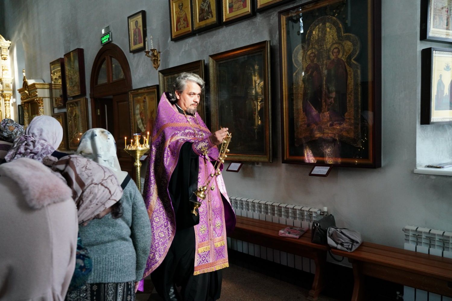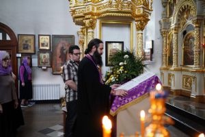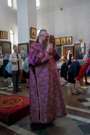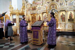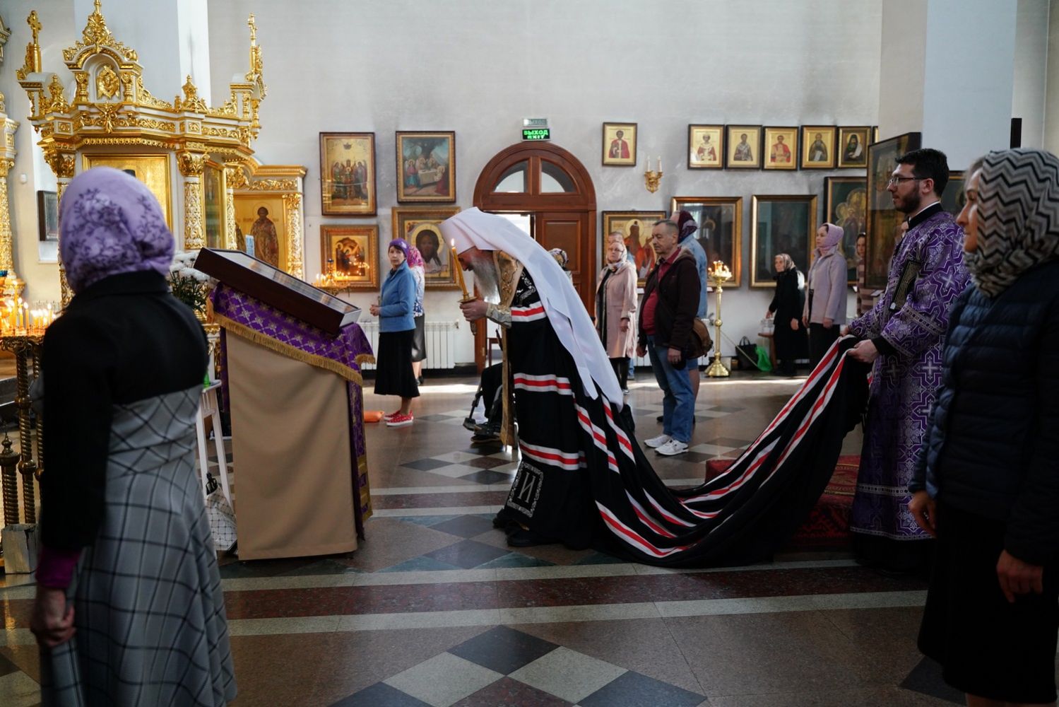Владыке сослужили настоятель храма иерей Александр Лоскутов, клирики храма и протодиакон Михаил Козловский. Песнопения исполнял хор храма под руководством регента Наталии Поповой.
