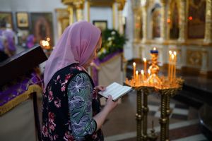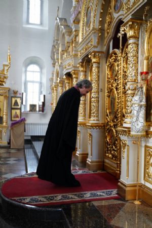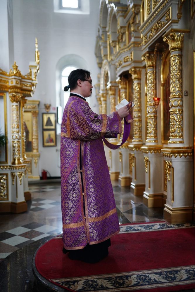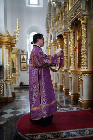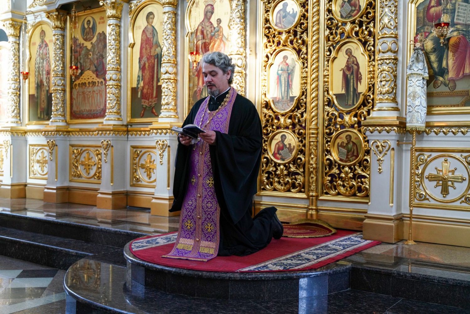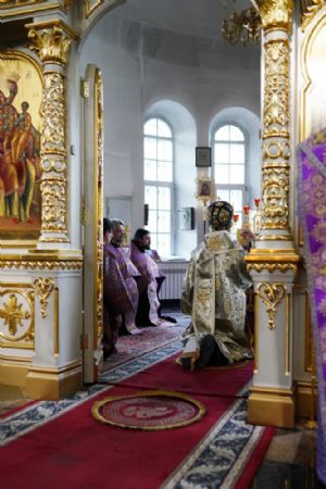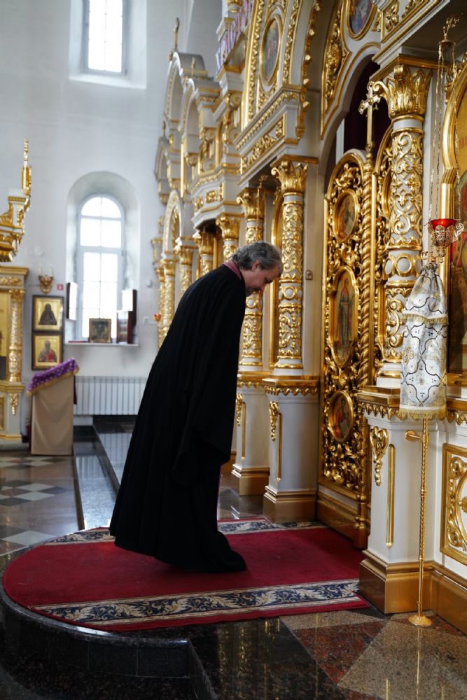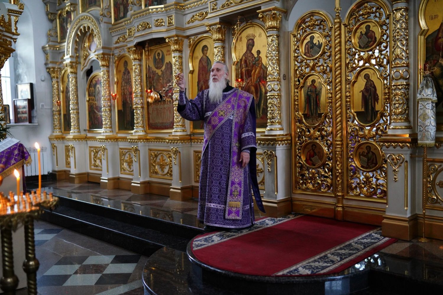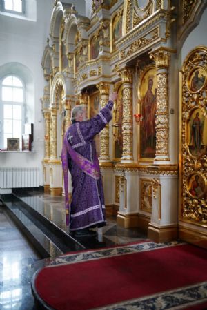 После чтения трех кафизм на утрене в алтаре владыка прочитал отрывок из Евангелия от Иоанна (12 глава), повествующий о вольных страданиях и будущей славе Господа нашего Иисуса Христа и вере в Него.