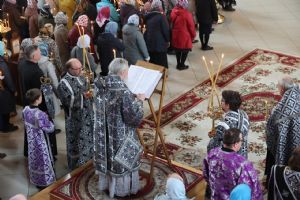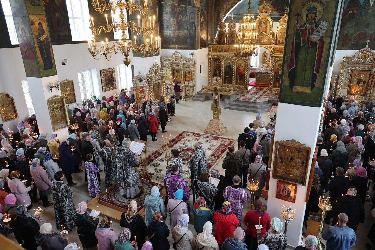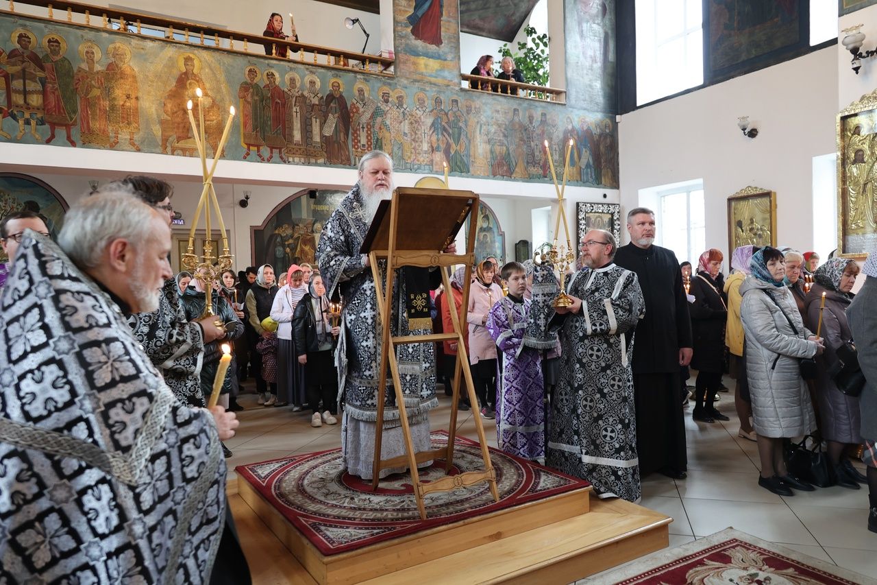 Архипастырю сослужили клирики собора, песнопения исполнял архиерейский хор под управлением Любови Михеевой.