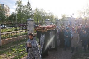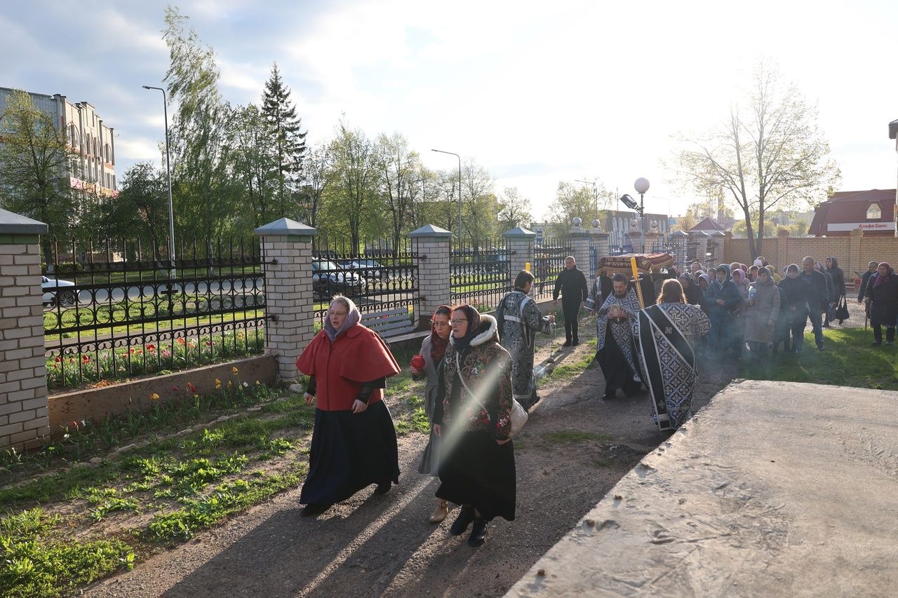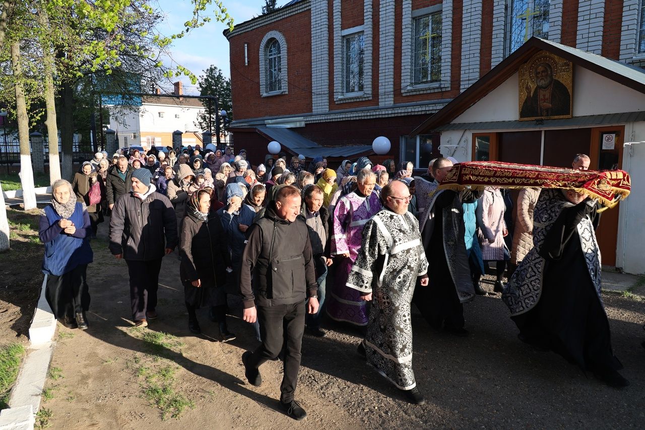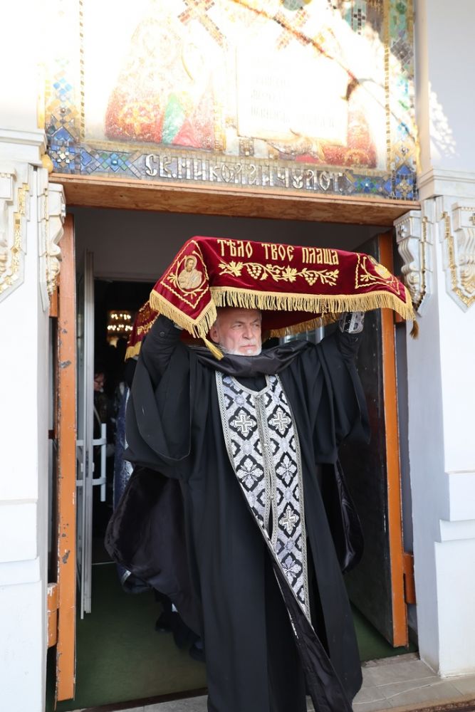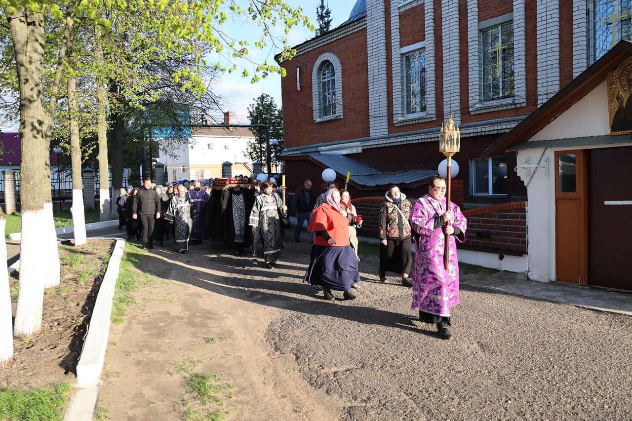 В воспоминание погребения Христова, сошествия Его во ад и победы над смертью священнослужители поднимали Плащаницу над главами и совершали тихий крестный ход вокруг храма, во время которого пелось «Святый Боже, Святый Крепкий, Святый Безсмертный, помилуй нас...» Затем Плащаницу поднесли к открытым Царским вратам и положили посредине храма в ознаменование того, что Спаситель неразлучно пребывает с Богом Отцом и что Он Своими страданиями и смертью снова отверз нам двери рая.