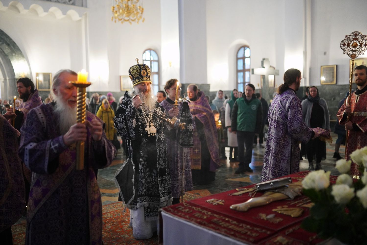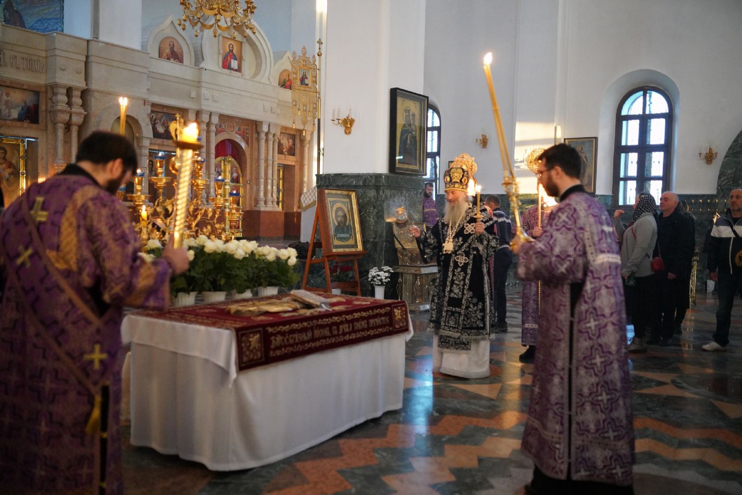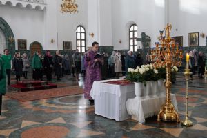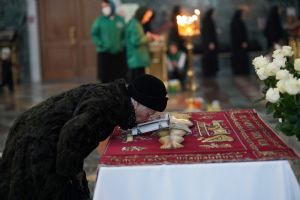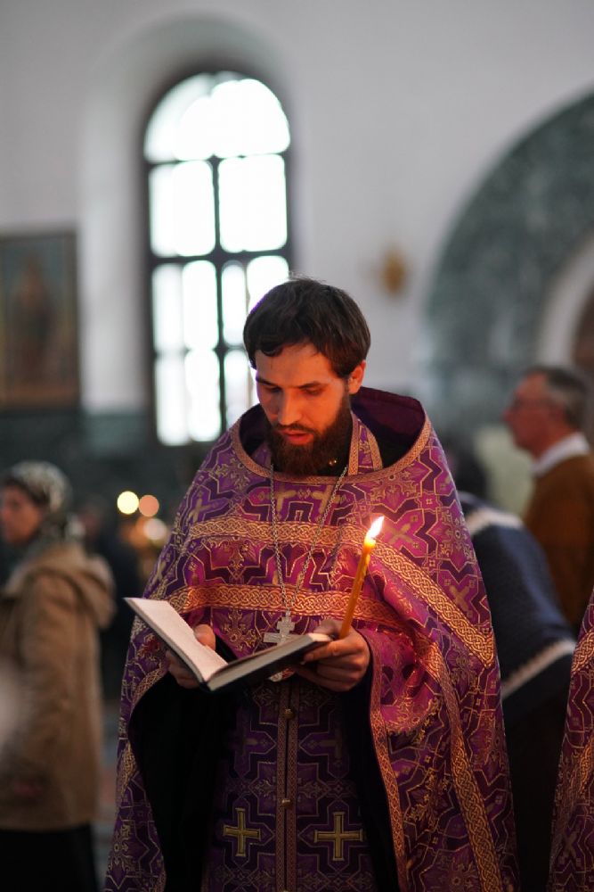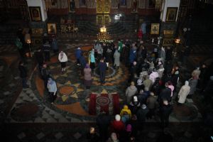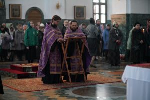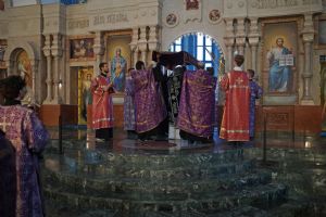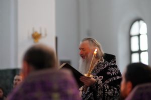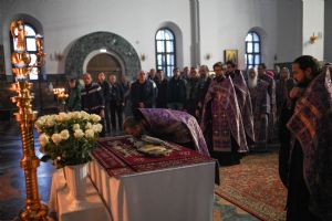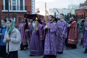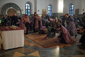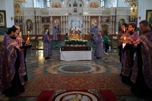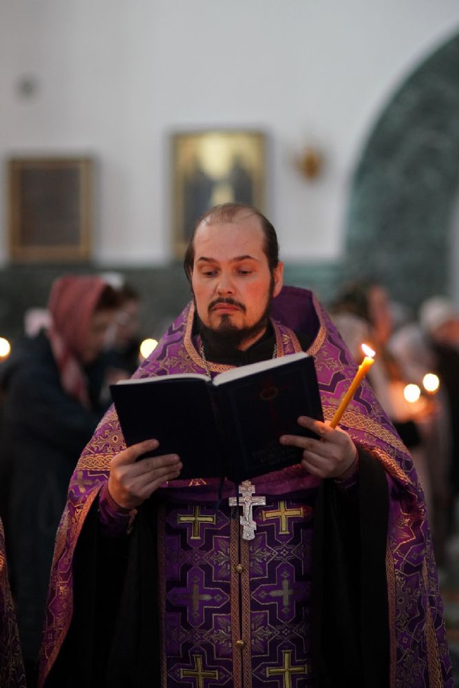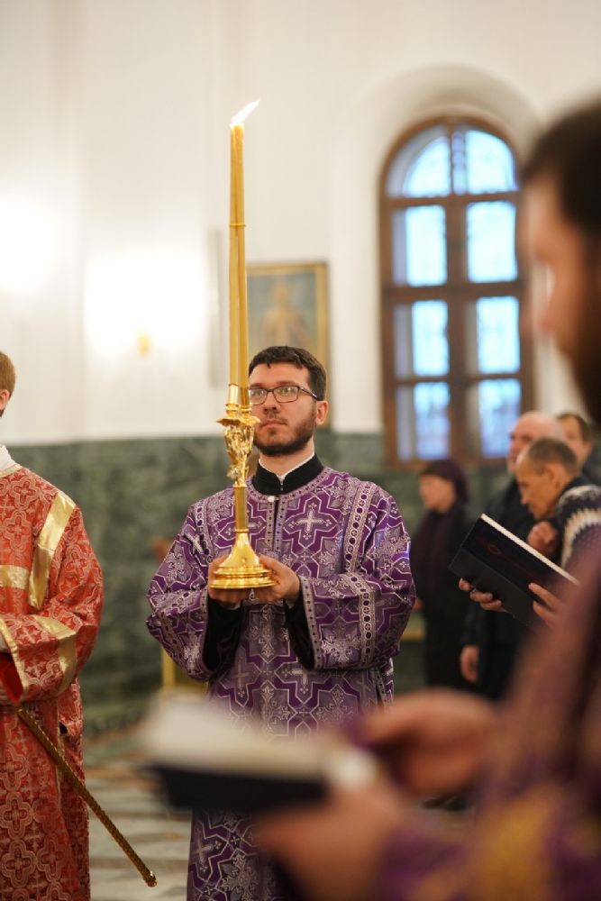 Его Высокопреосвященству сослужили ключарь кафедрального собора протоиерей Сергий Поглазов, клирики собора и протодиакон Михаил Козловский. Песнопения исполнял хор «Благовест» под руководством регента Татьяны Черновой.