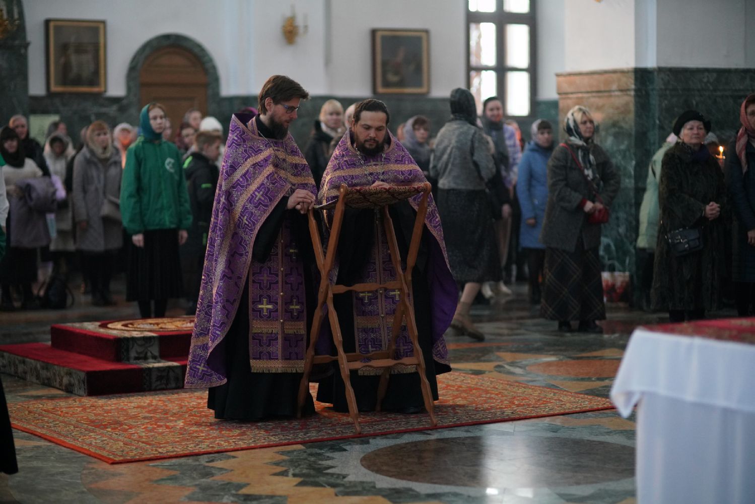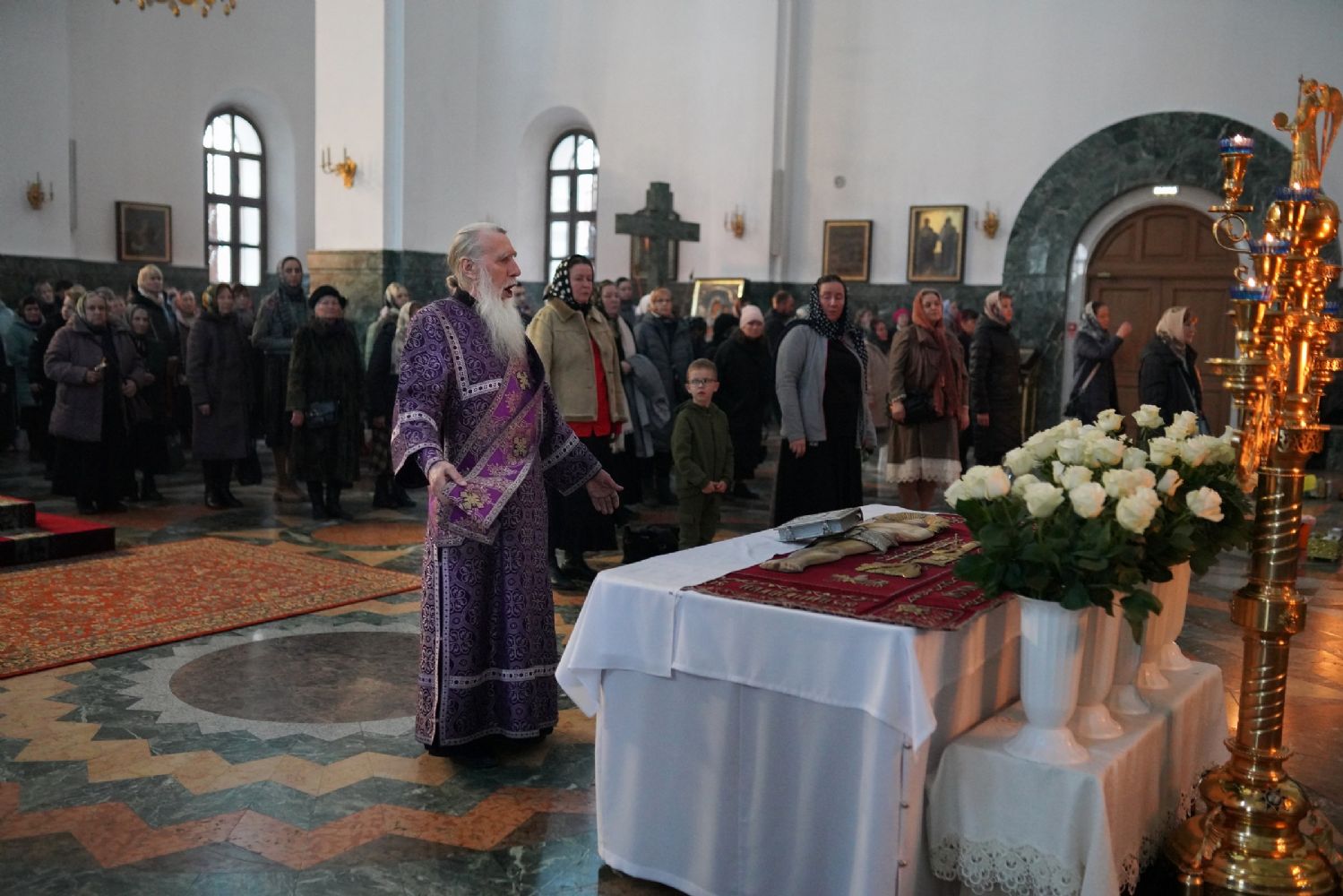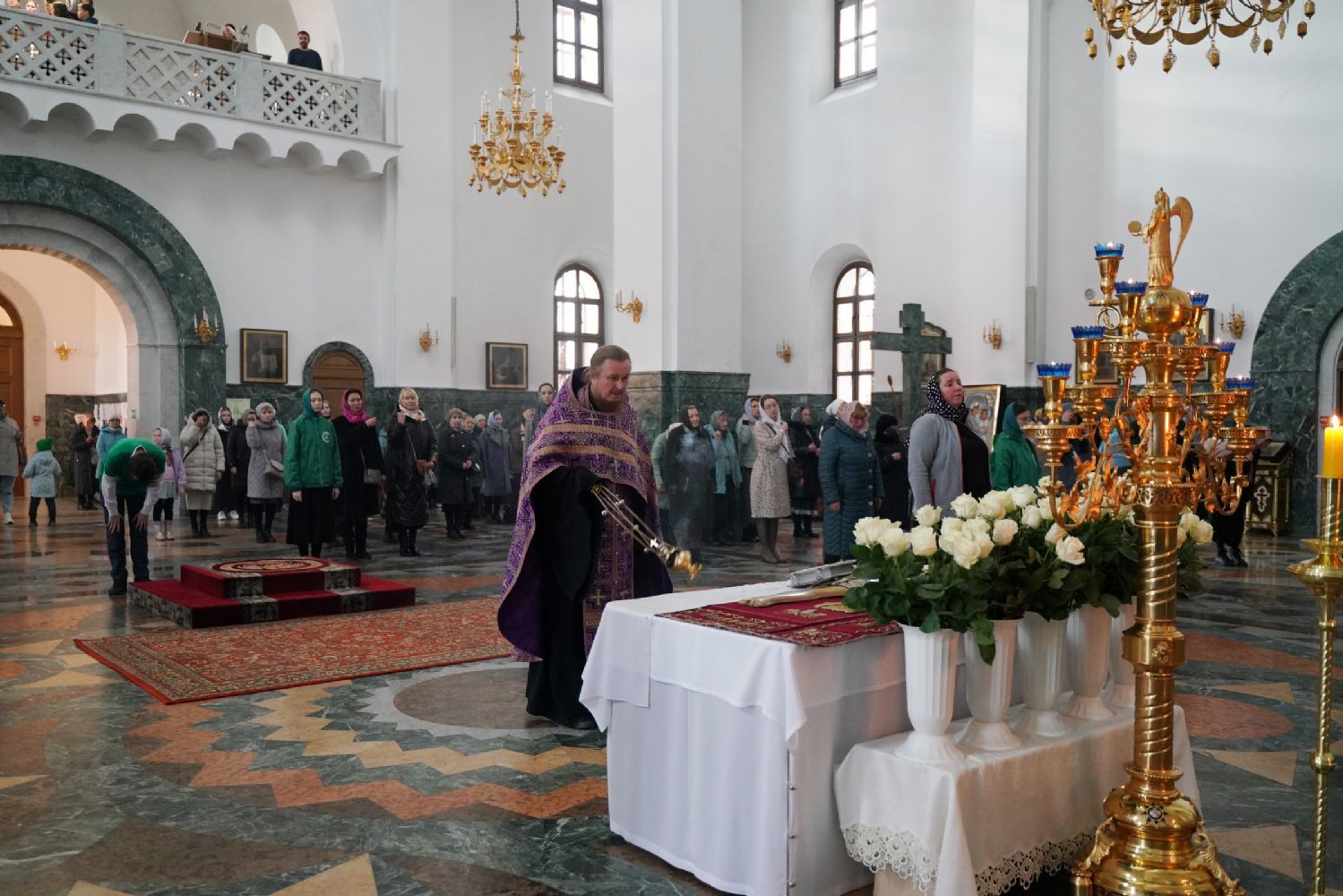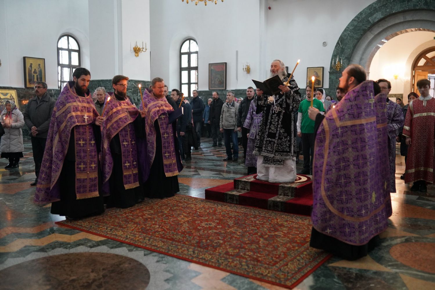 Его Высокопреосвященству сослужили ключарь кафедрального собора протоиерей Сергий Поглазов, клирики собора и протодиакон Михаил Козловский. Песнопения исполнял хор «Благовест» под руководством регента Татьяны Черновой.