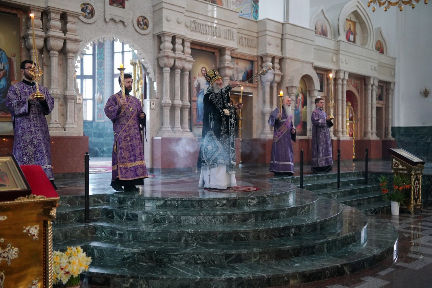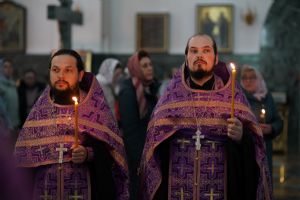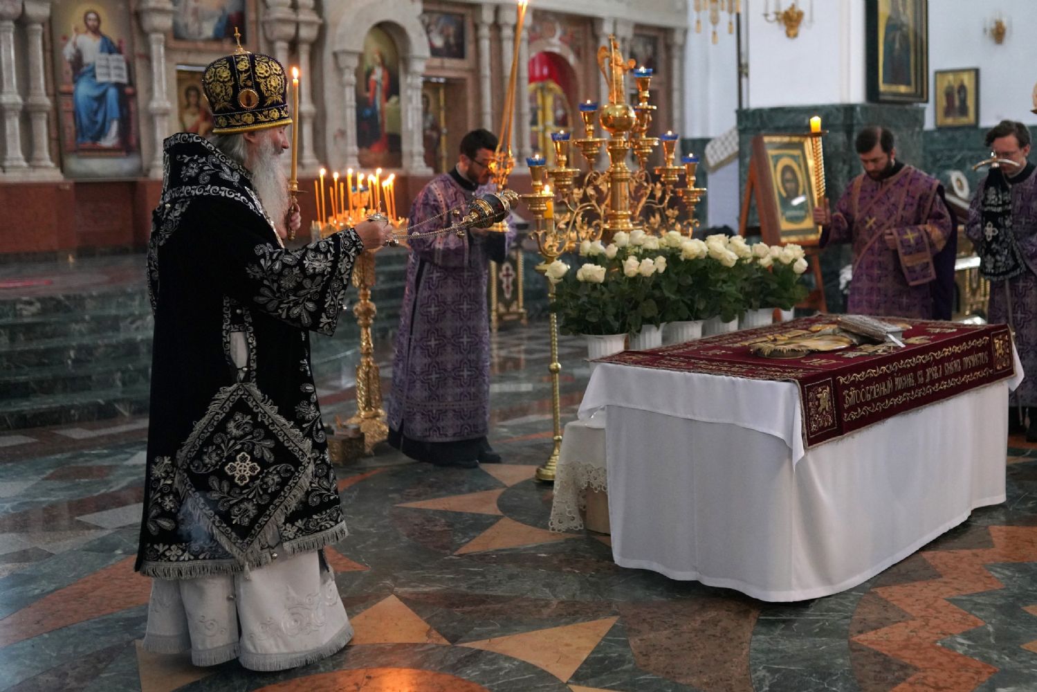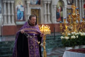3 мая, вечером Страстной Пятницы, митрополит Иоанн возглавил утреню Великой Субботы с чином погребения Плащаницы в Благовещенском кафедральном соборе.