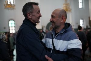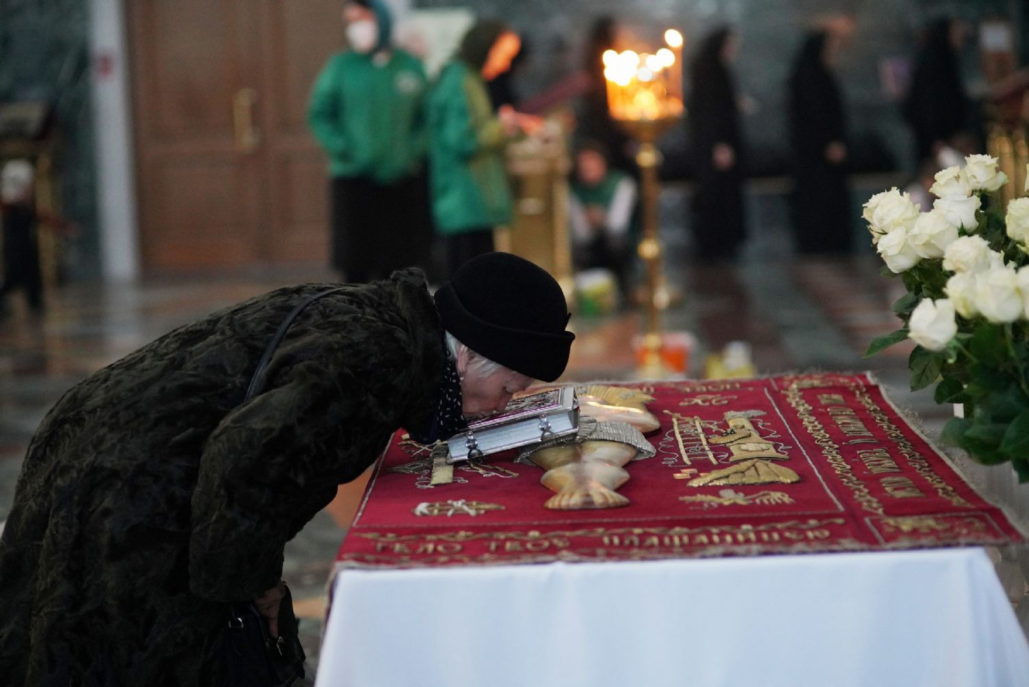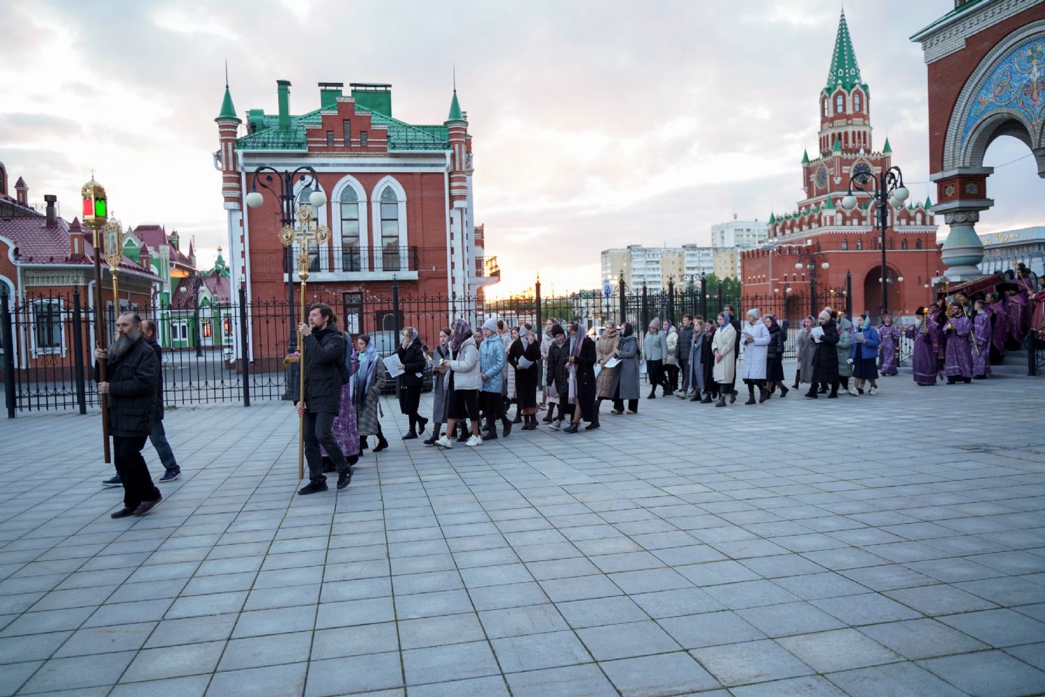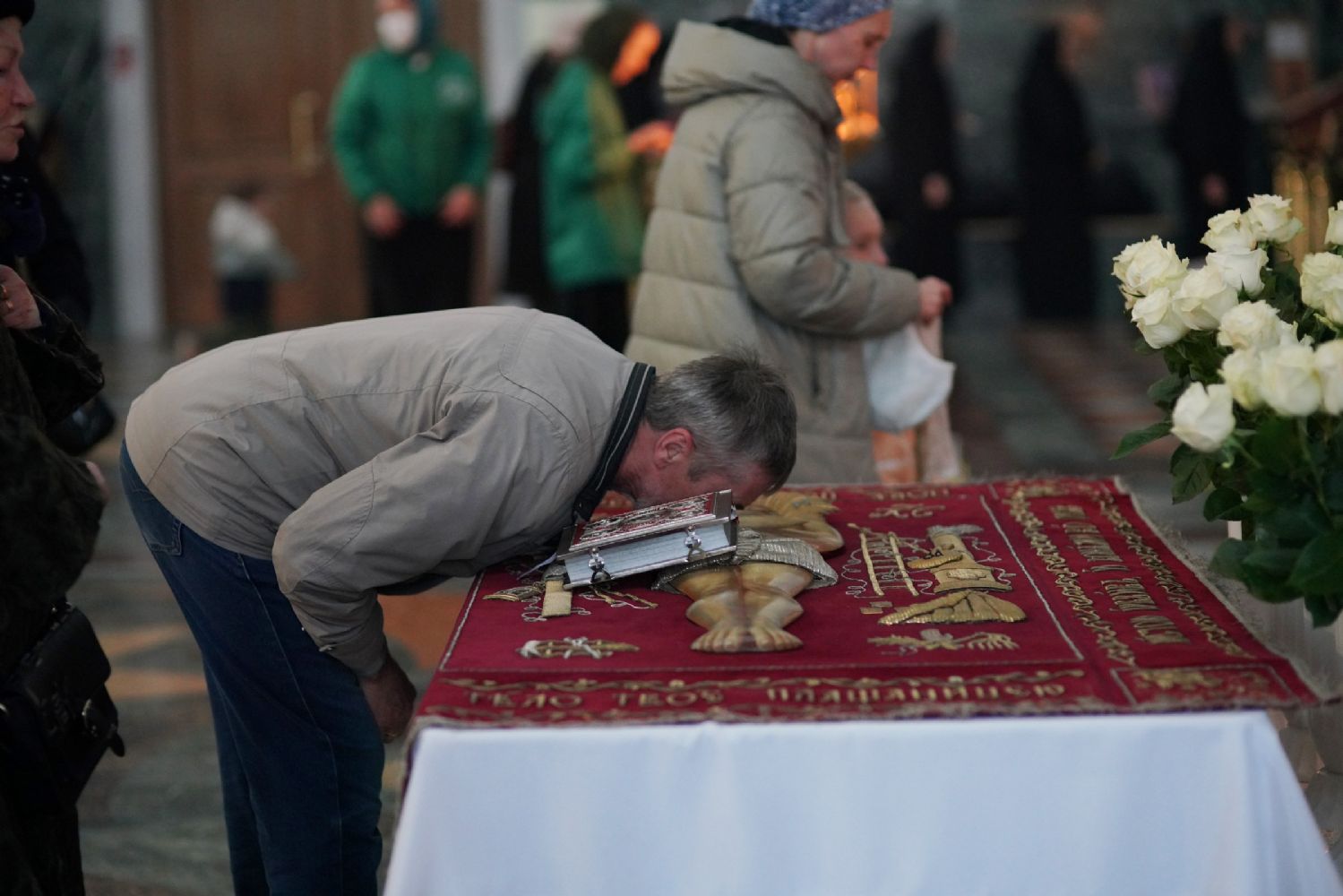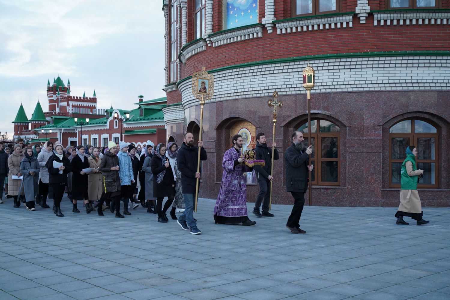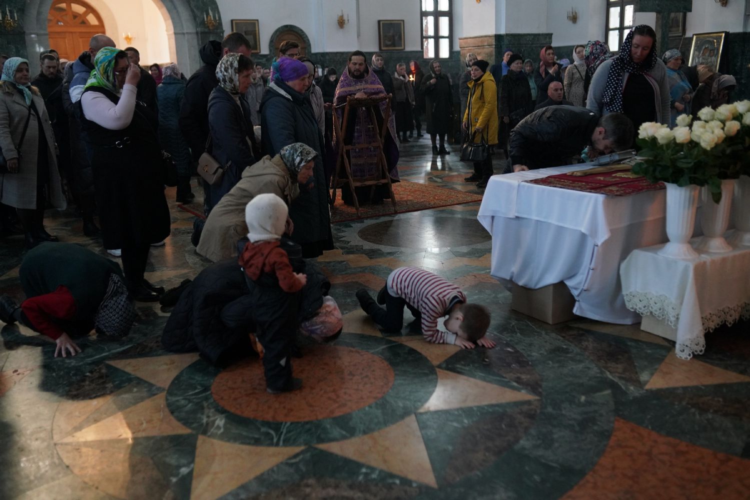 После канона и великого славословия при пении «Святый Боже» и погребальном перезвоне колоколов Плащаница крестным ходом была обнесена вокруг храма в воспоминание погребения Христова, сошествия Его во ад и победы над смертью.