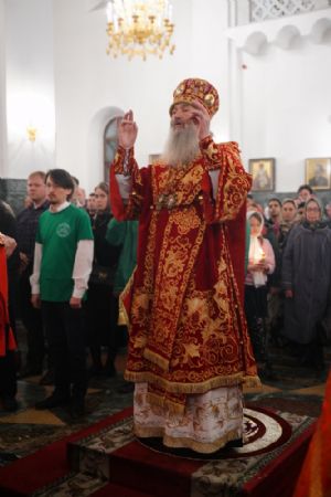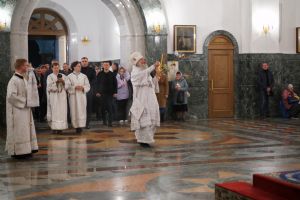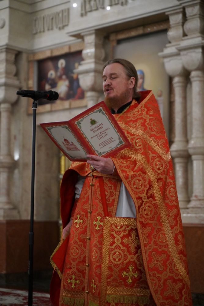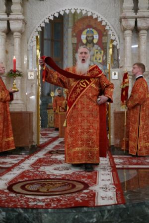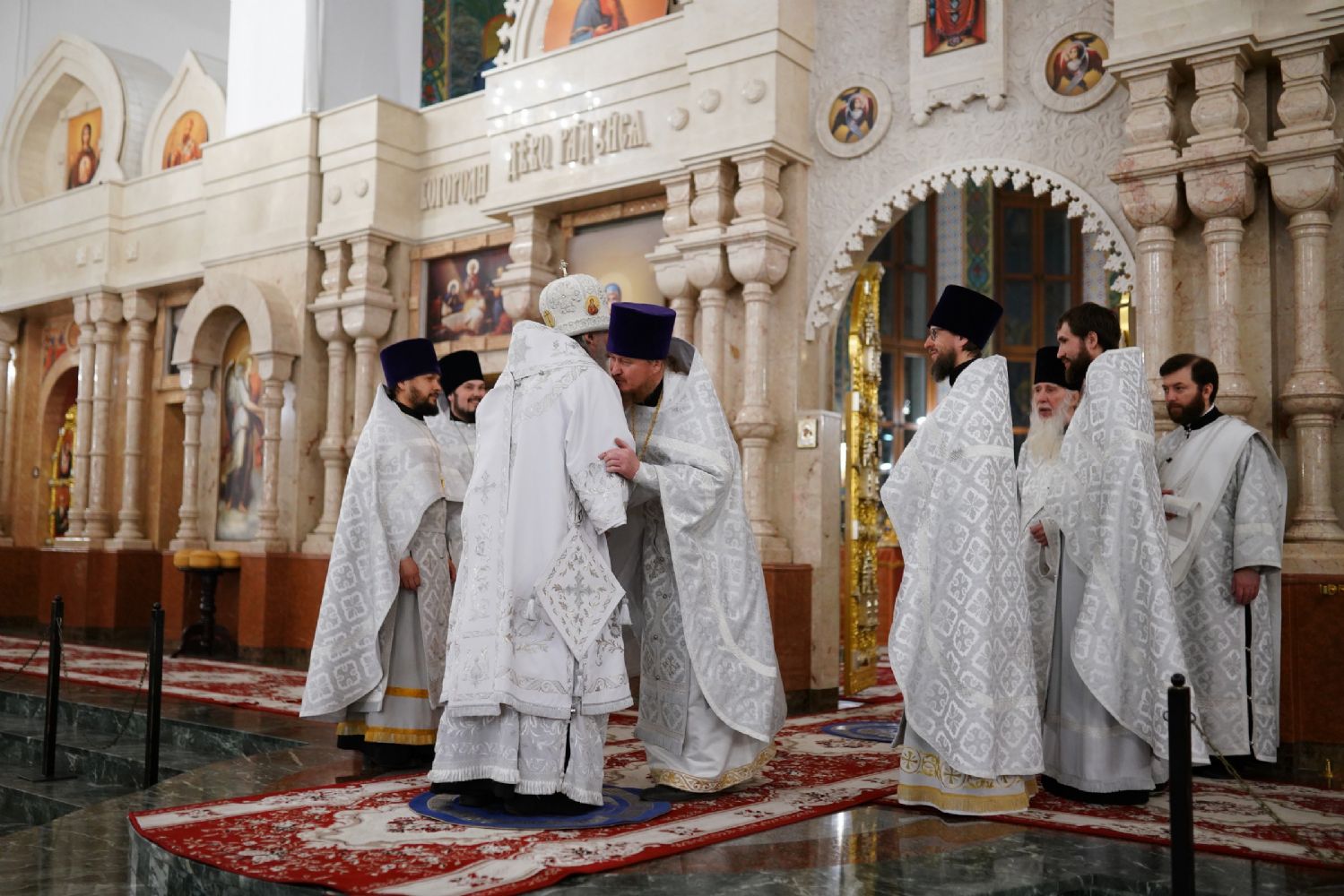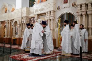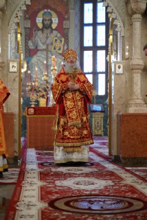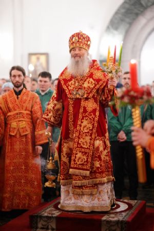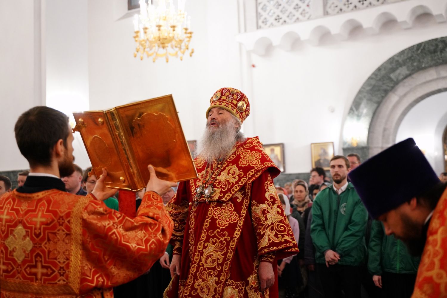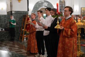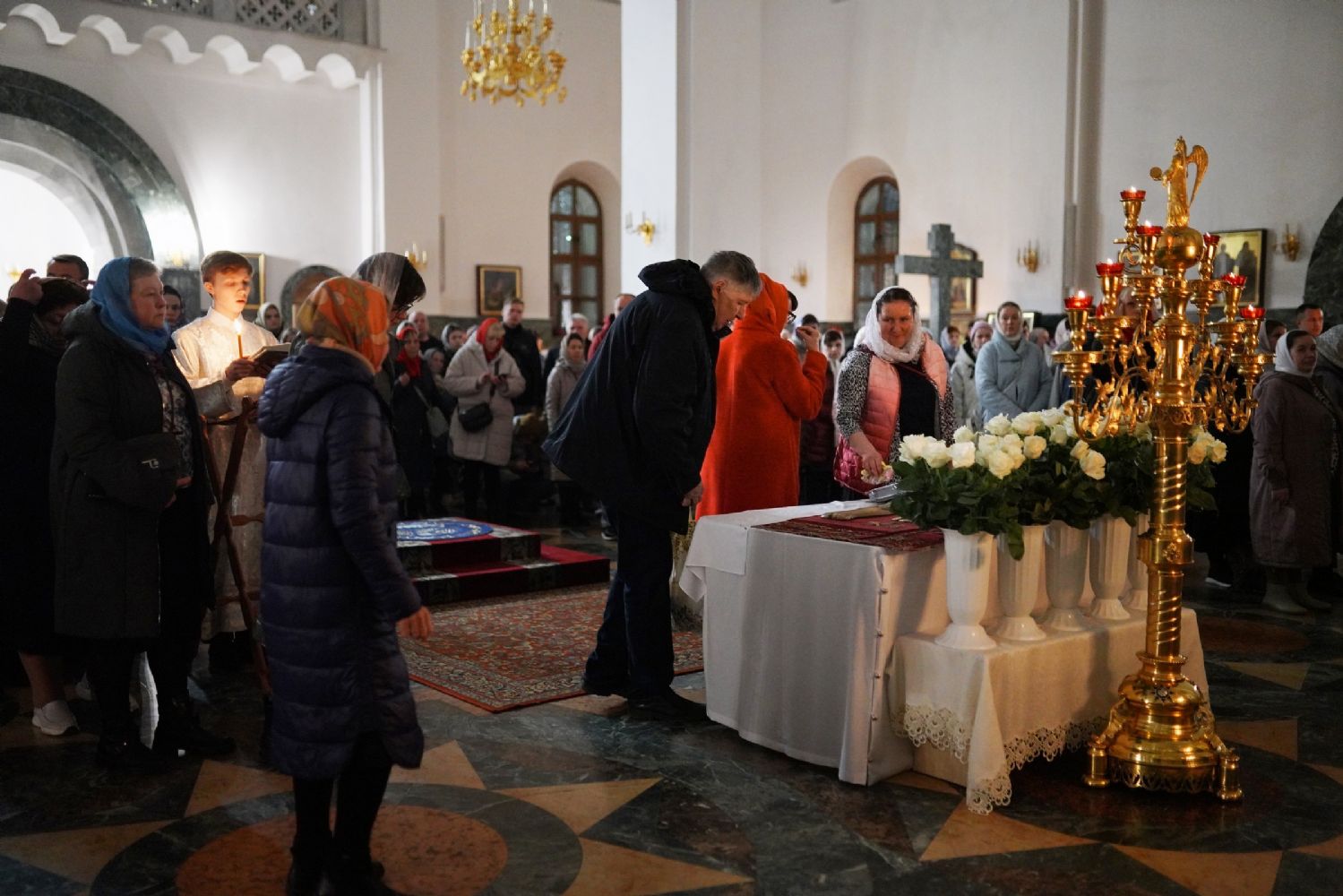 Владыке сослужили ключарь собора протоиерей Сергий Поглазов, клирики собора и протодиакон Михаил Козловский. Богослужебные песнопения исполняли старший и младший составы детско-юношеского хора «Благовест» под управлением регентов Татьяны Черновой и Надежды Поздеевой. Часть песнопений звучала в исполнении хора священно- и церковнослужителей под управлением иерея Евгения Самойлова.