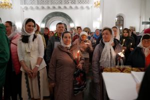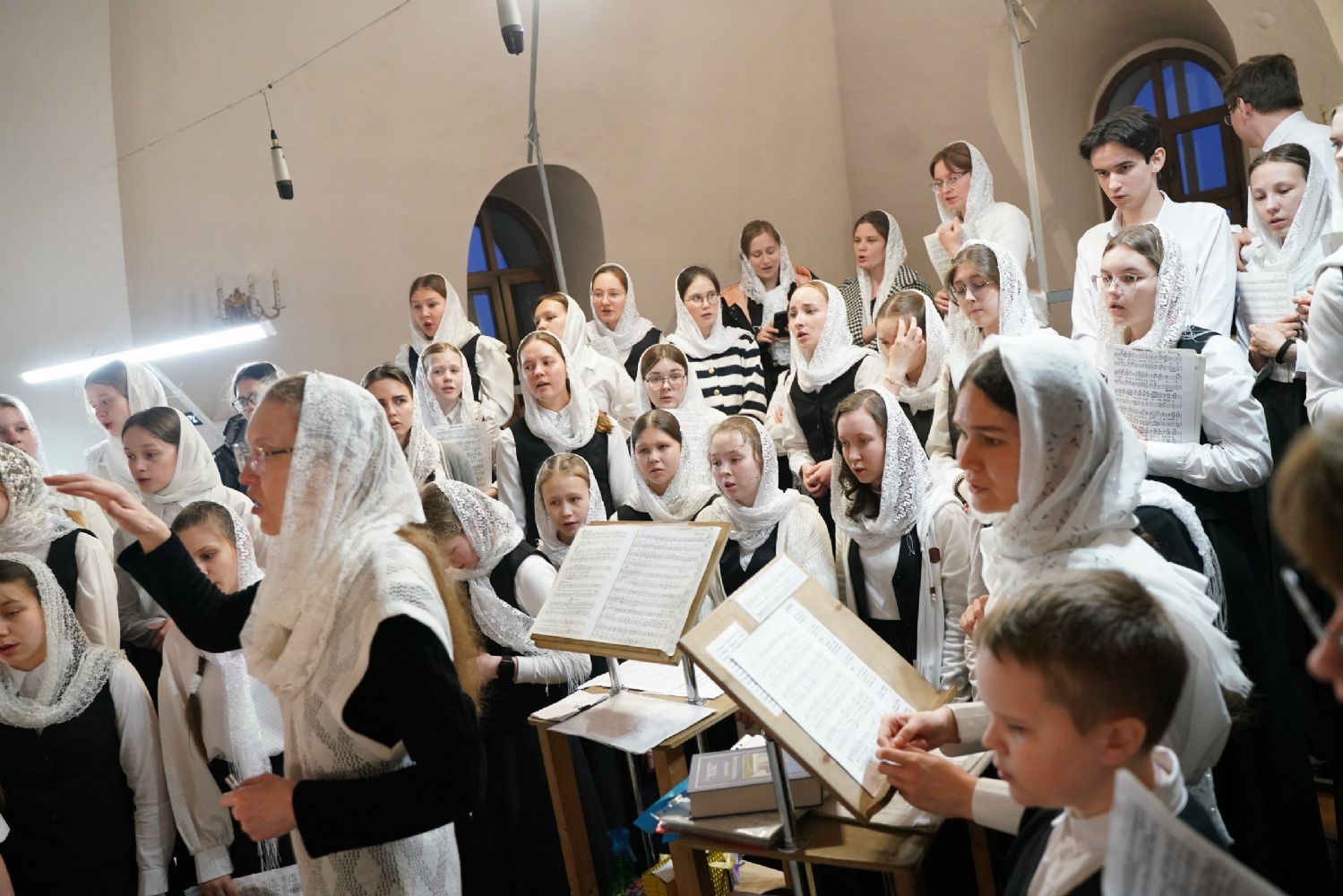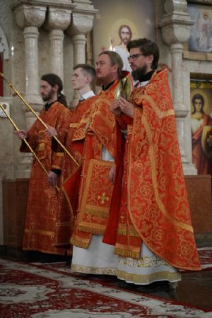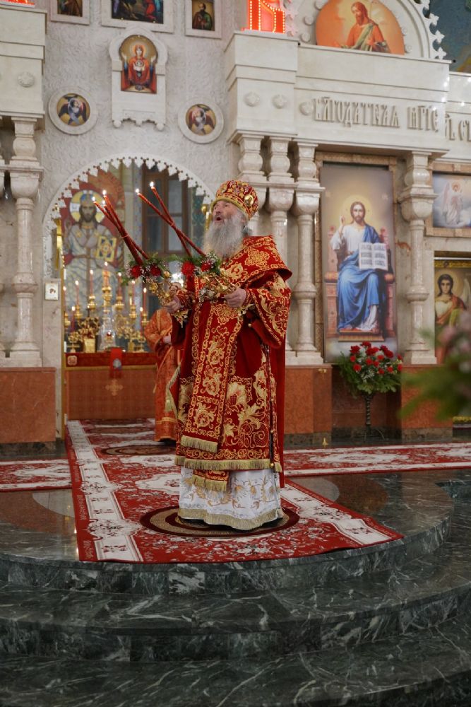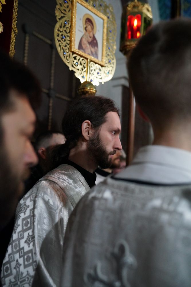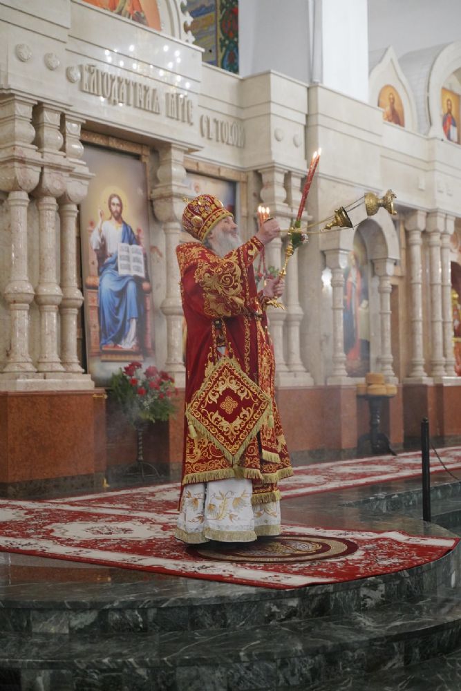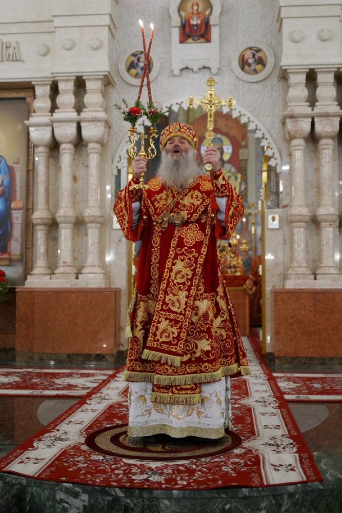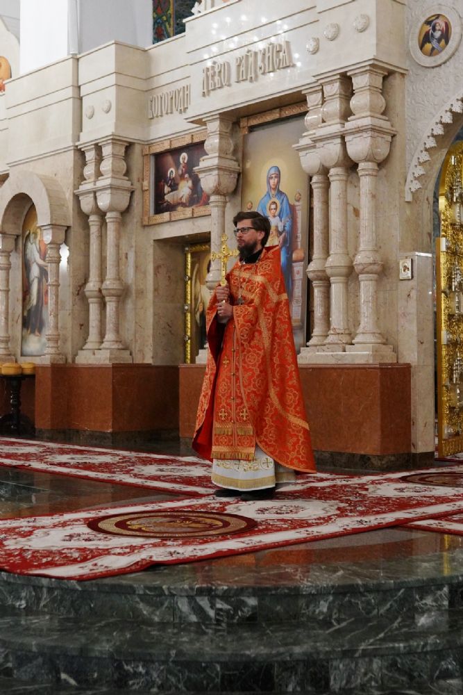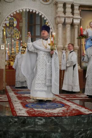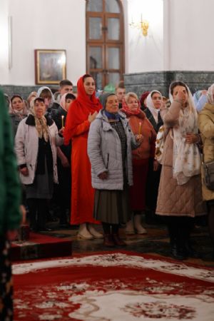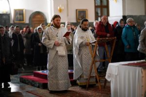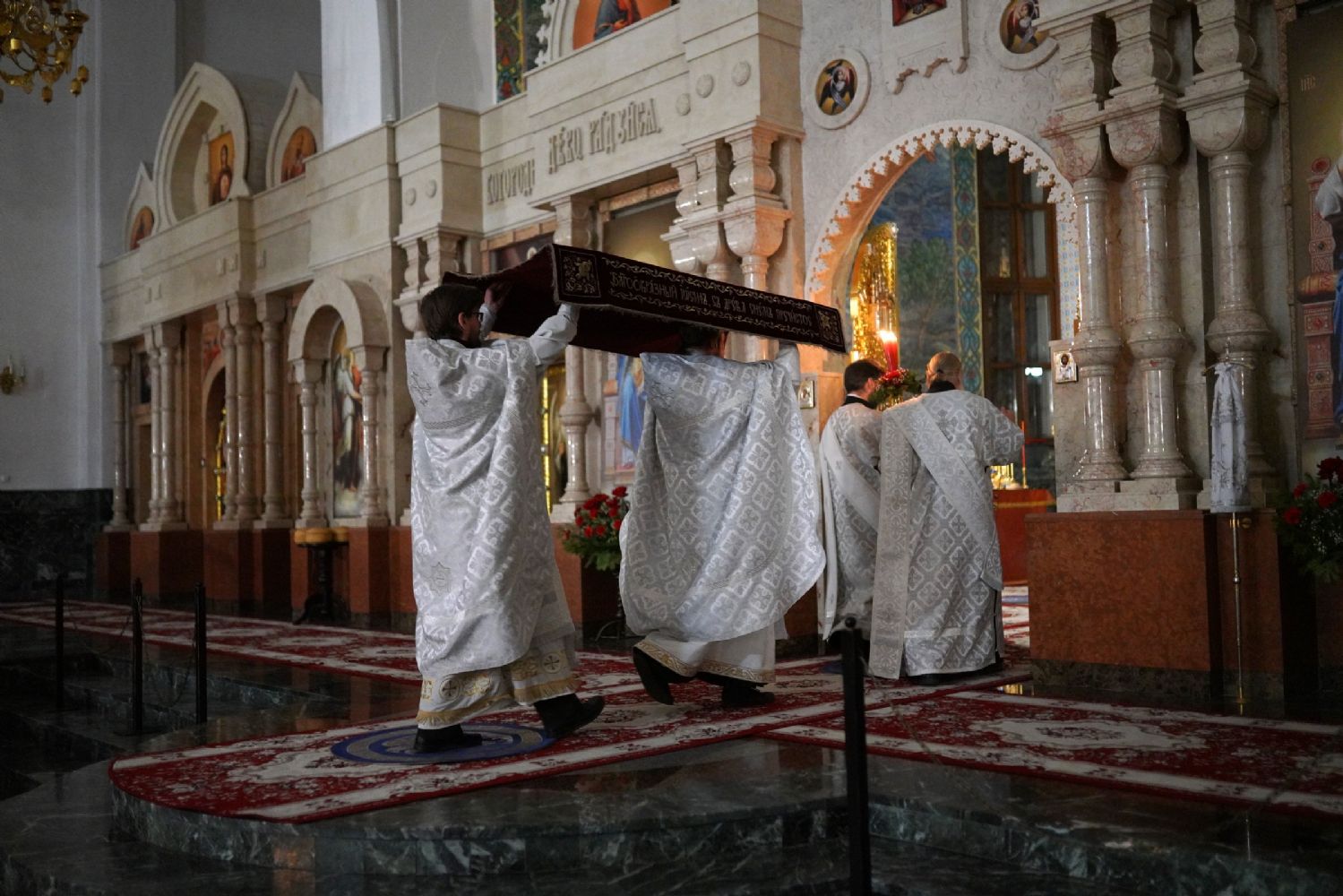 Владыке сослужили ключарь собора протоиерей Сергий Поглазов, клирики собора и протодиакон Михаил Козловский. Богослужебные песнопения исполняли старший и младший составы детско-юношеского хора «Благовест» под управлением регентов Татьяны Черновой и Надежды Поздеевой. Часть песнопений звучала в исполнении хора священно- и церковнослужителей под управлением иерея Евгения Самойлова.
