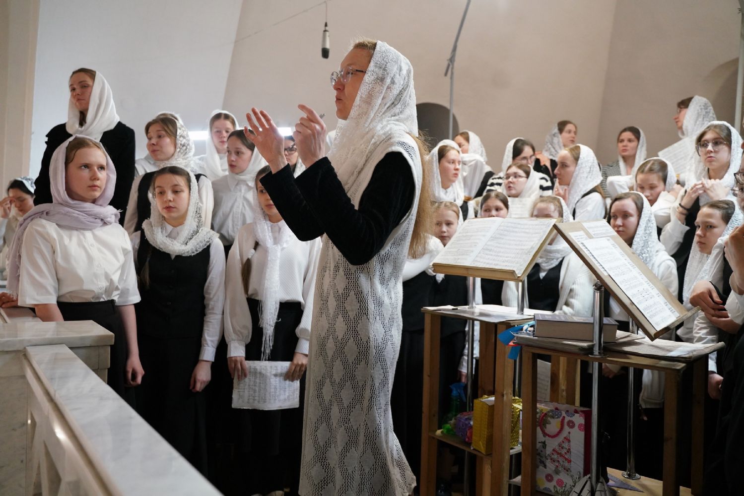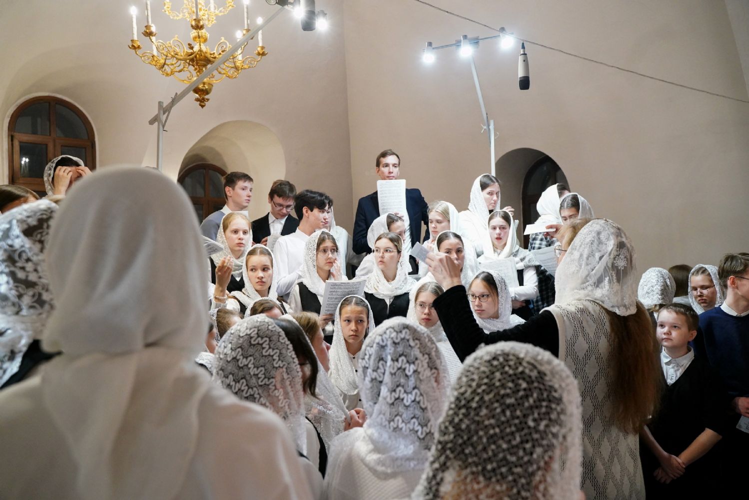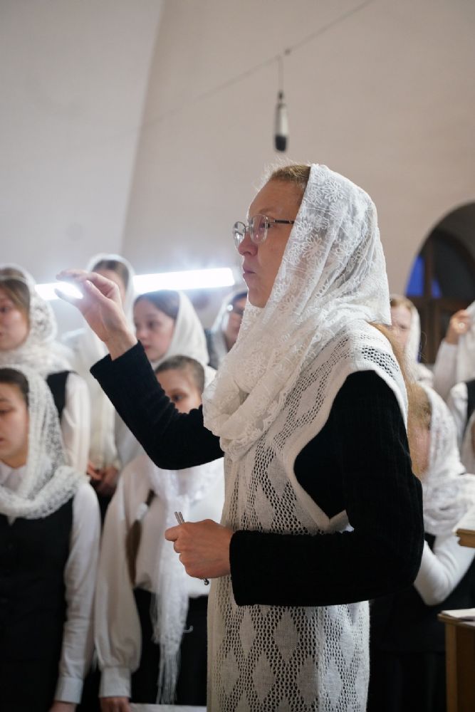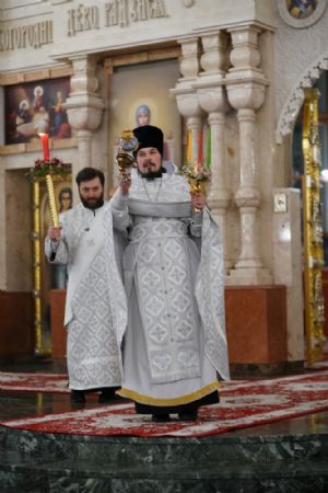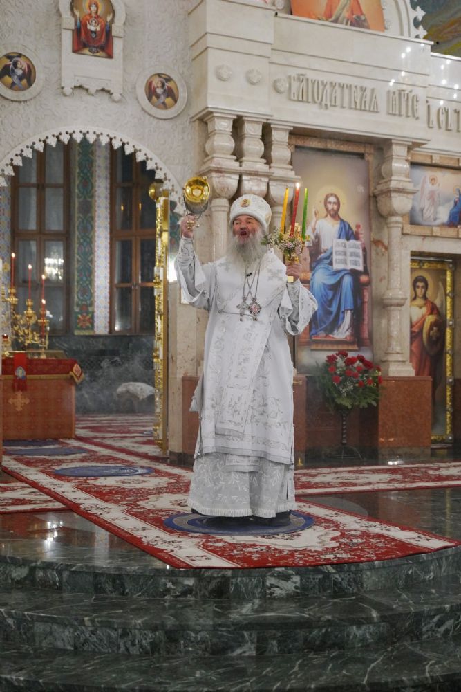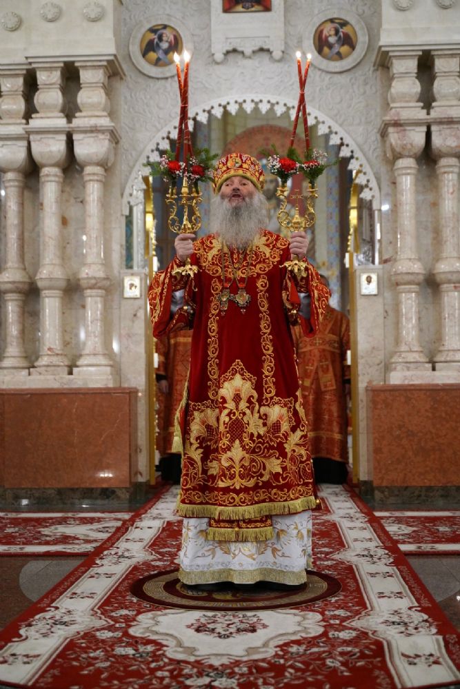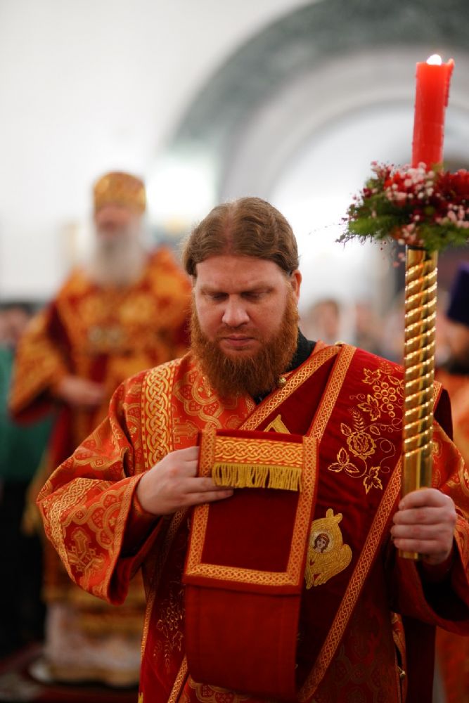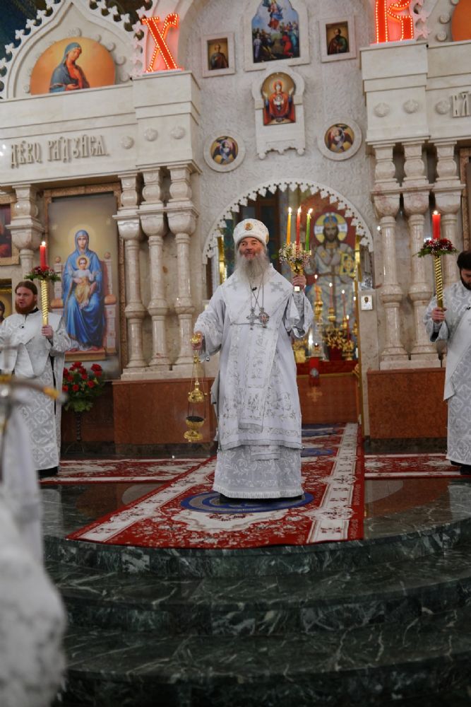 Владыке сослужили ключарь собора протоиерей Сергий Поглазов, клирики собора и протодиакон Михаил Козловский. Богослужебные песнопения исполняли старший и младший составы детско-юношеского хора «Благовест» под управлением регентов Татьяны Черновой и Надежды Поздеевой. Часть песнопений звучала в исполнении хора священно- и церковнослужителей под управлением иерея Евгения Самойлова.
